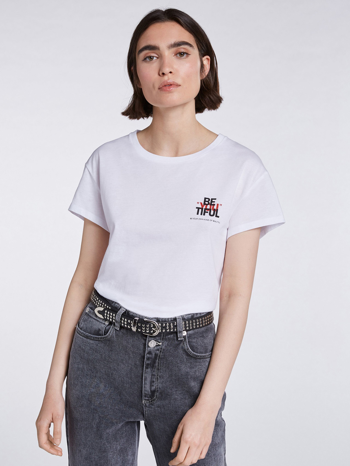 Ремень из натуральной кожи с металлическими заклепками подходит для разных нарядов и образов.