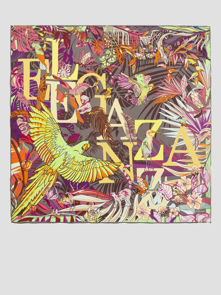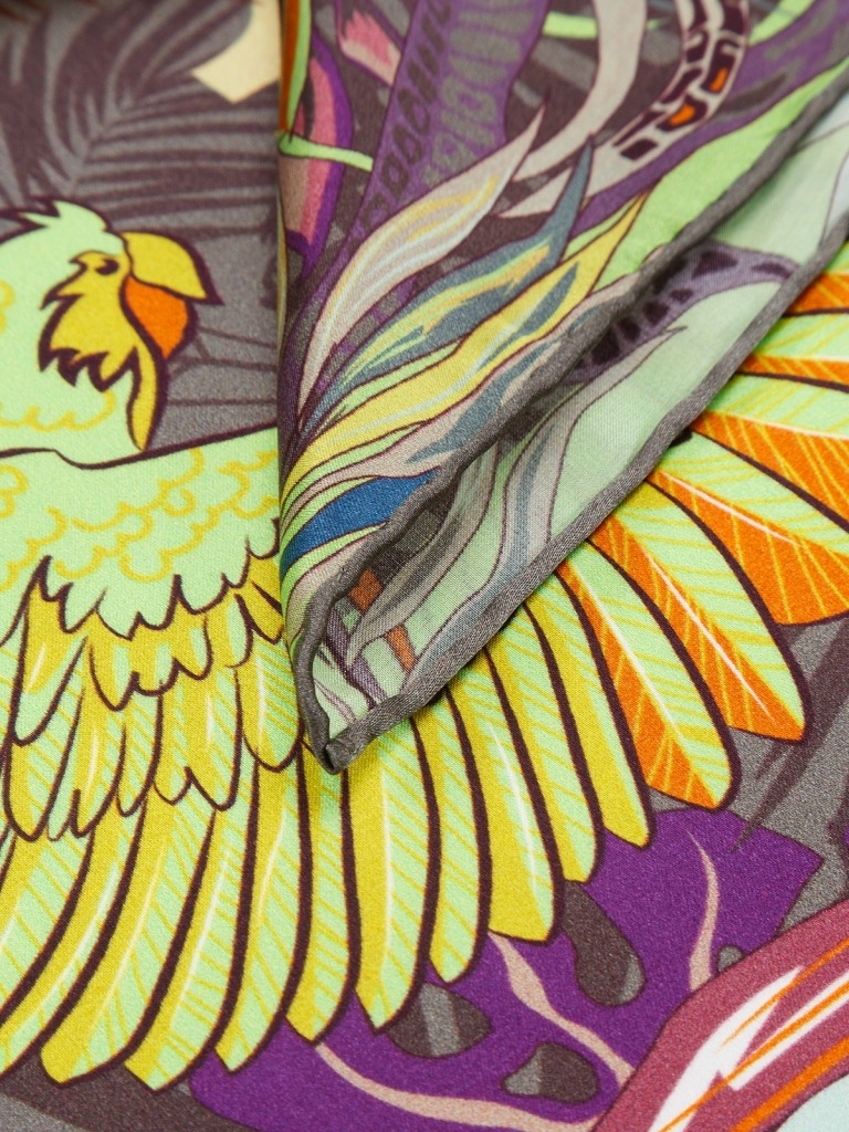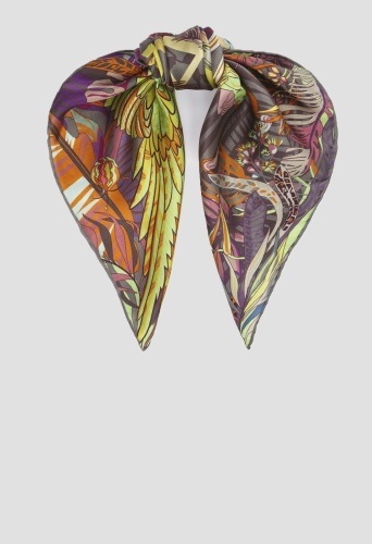 Платок с принтом из 100% шёлка. Тип плетения: Сатин. Размер: 53х53 см. Ручная подгибка.