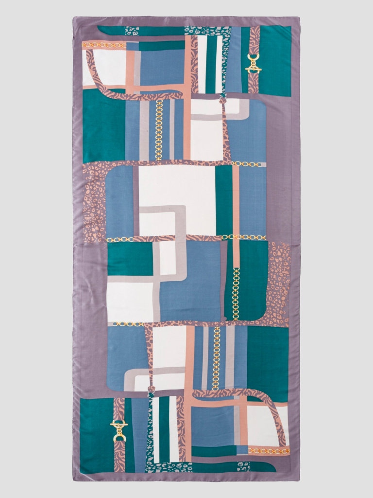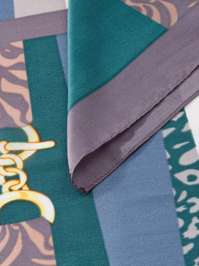 Состав: 50% шелк, 50% вискоза. Машинная подгибка. Размер: 90х180см.
