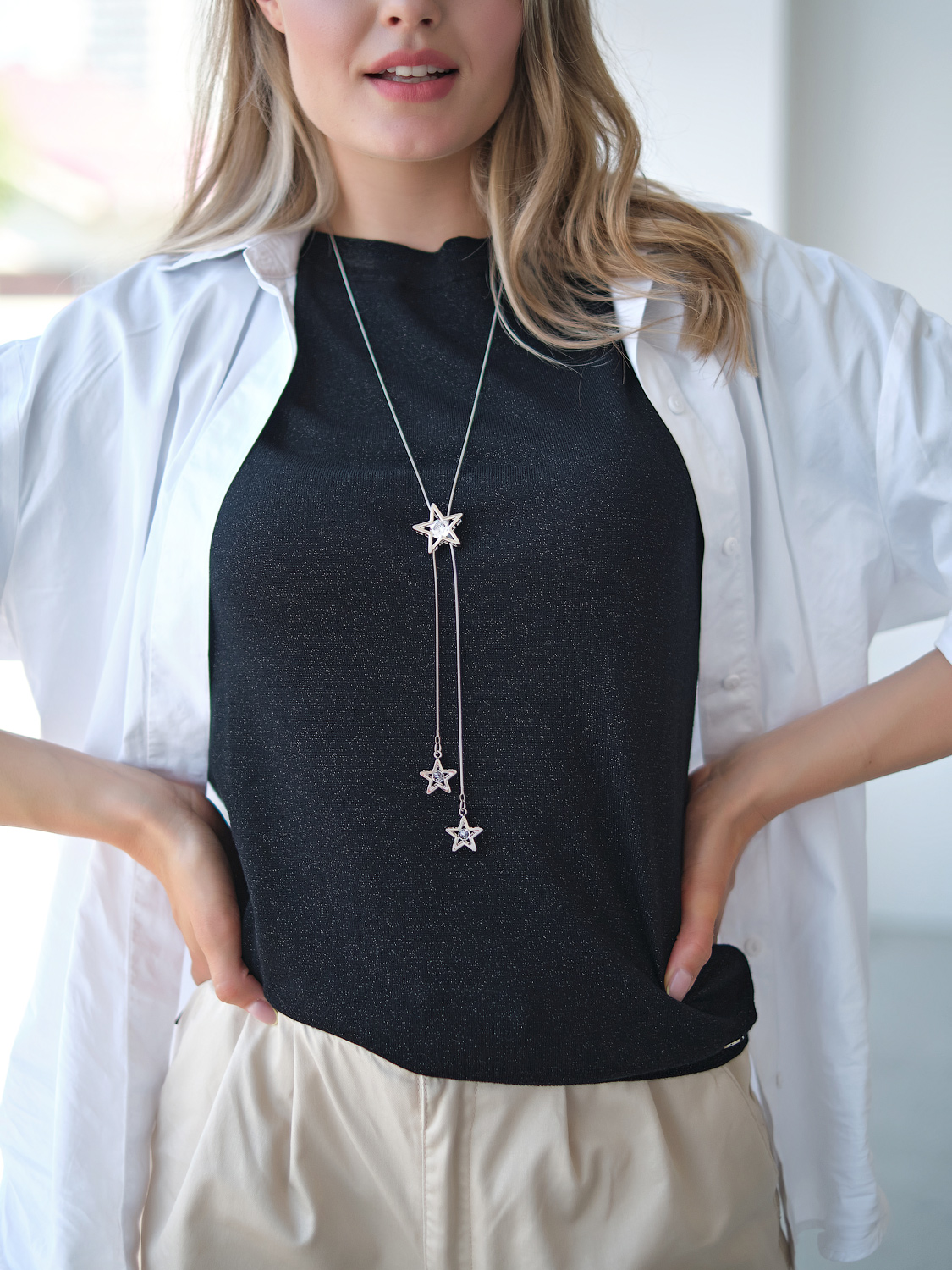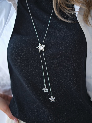 Украшение-подвеска в форме звезд. Изделие выполнено из комбинированных материалов с использованием горного хрусталя.