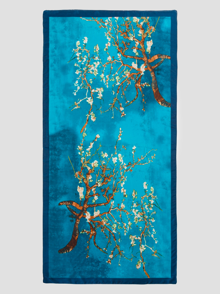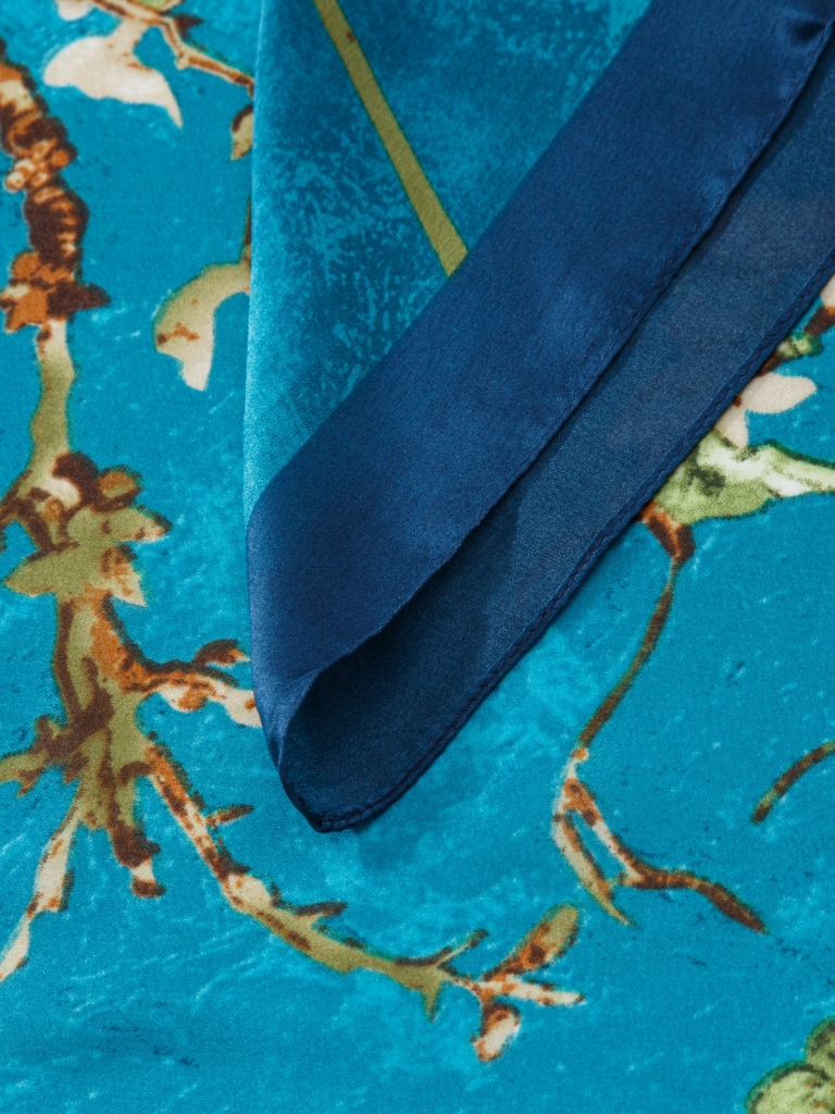 Состав: 50% шелк, 50% вискоза. Машинная подгибка. Размер: 90х180см.