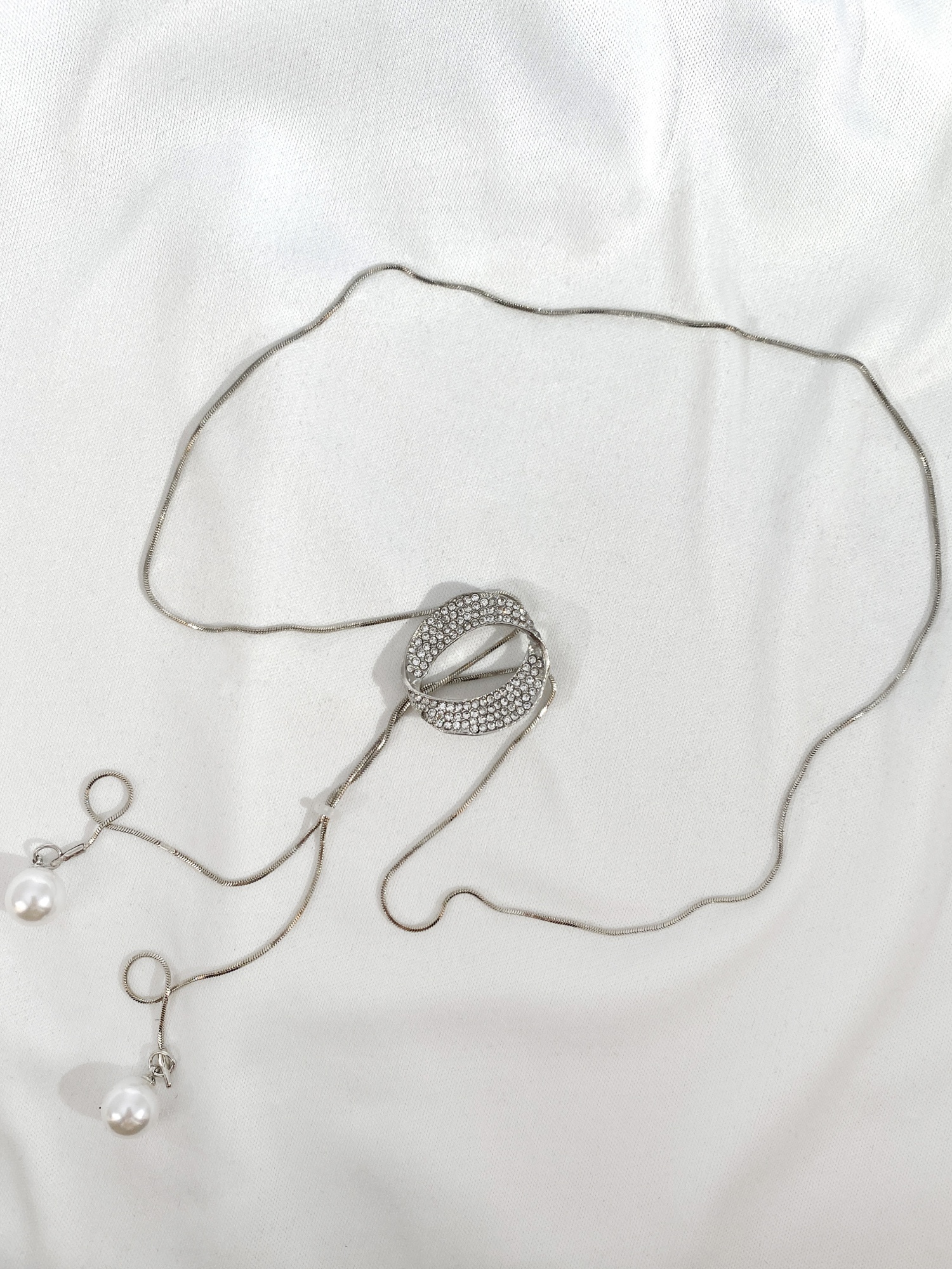 Длинное колье с акцентной подвеской - затяжкой и искусственным жемчугом