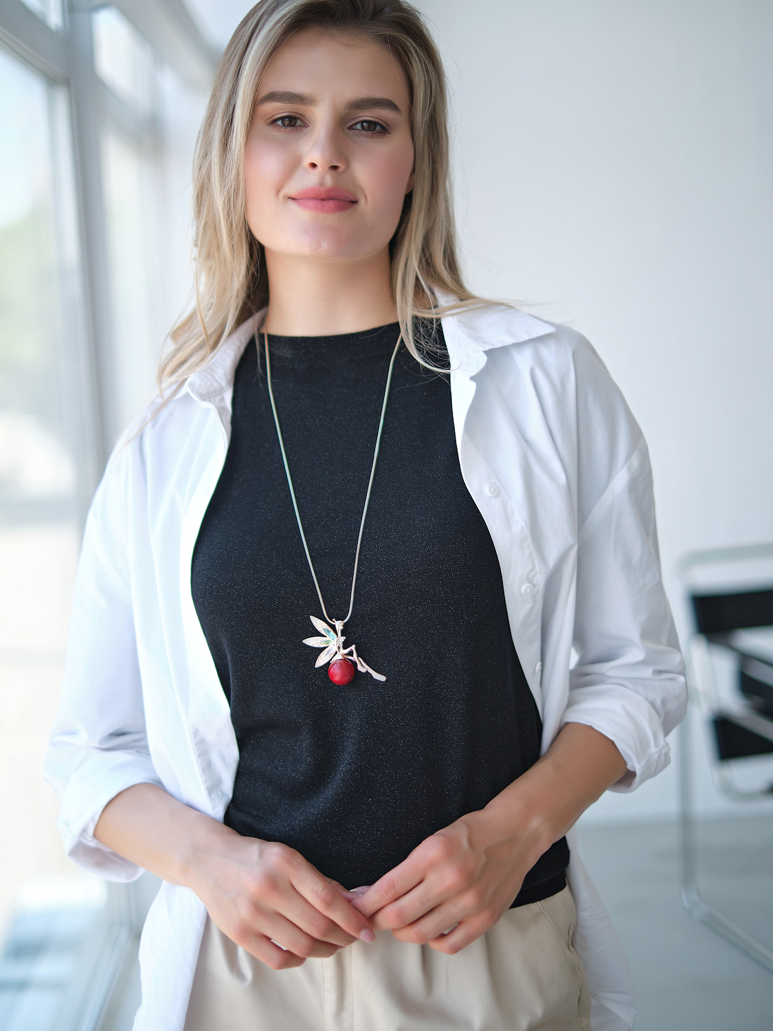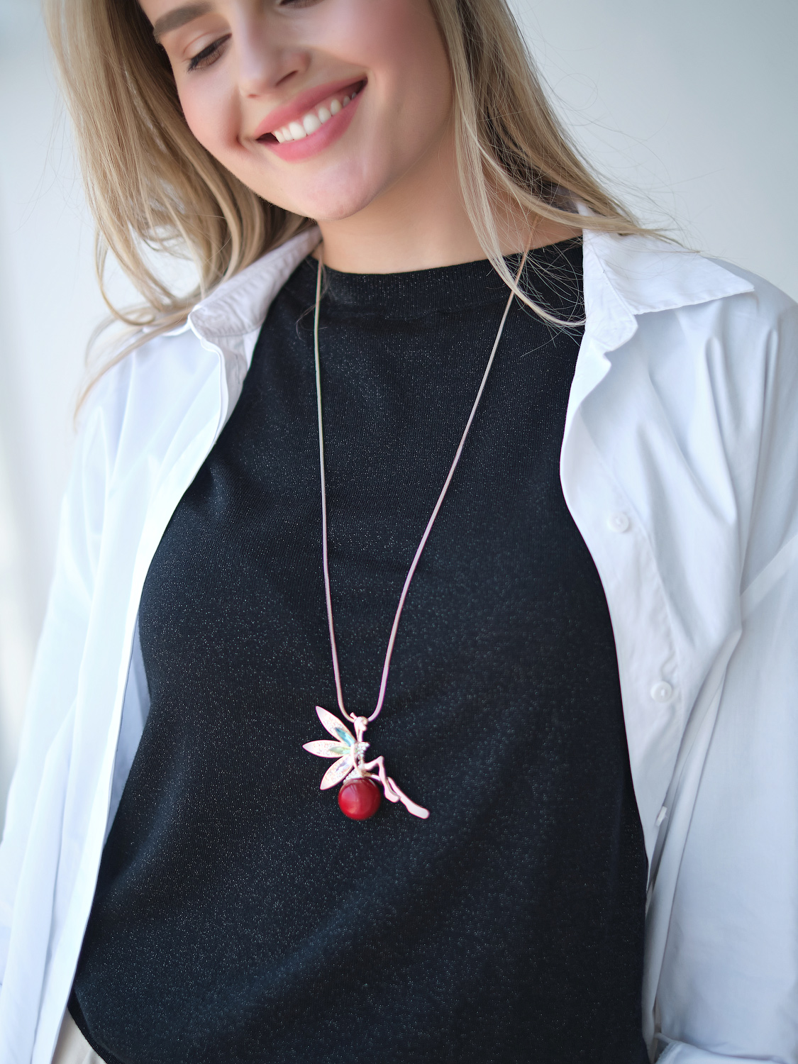 Украшение-подвеска в форме феи подчеркнет нежность и изящество образа. Изделие выполнено из комбинированных материалов с использованием искусственного жемчуга.