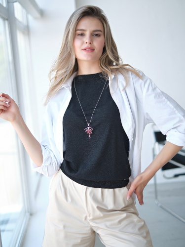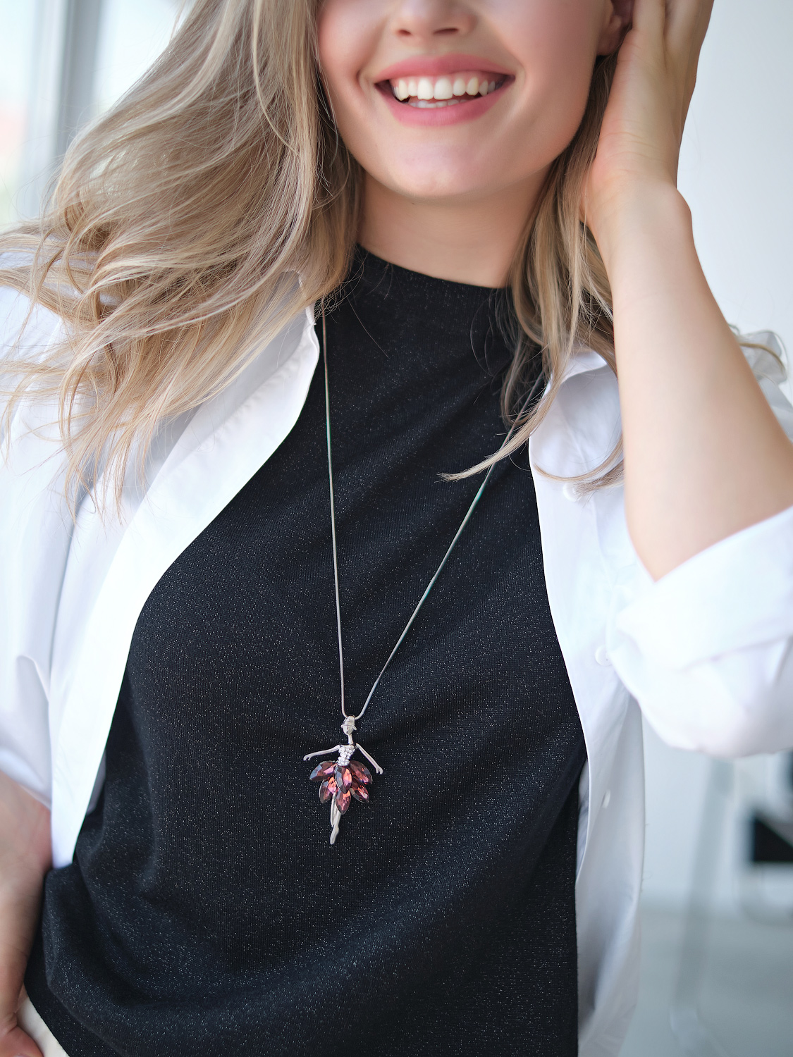 Украшение-подвеска создает изящный и женственный образ. Изделие выполнено из комбинированных материалов с использованием вставок горного хрусталя.