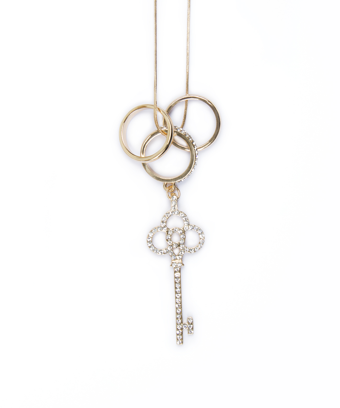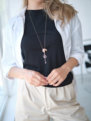 Подвеска в виде золотого ключика дополнит как повседневный, так и праздничный образ. Украшение инкрустировано вставками горного хрусталя.