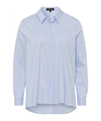 Повседневная оверсайз рубашка в широкую полоску. Втачной рукав полной длины с манжетой на пуговице. Рубашечный воротник, удлиненная спинка.