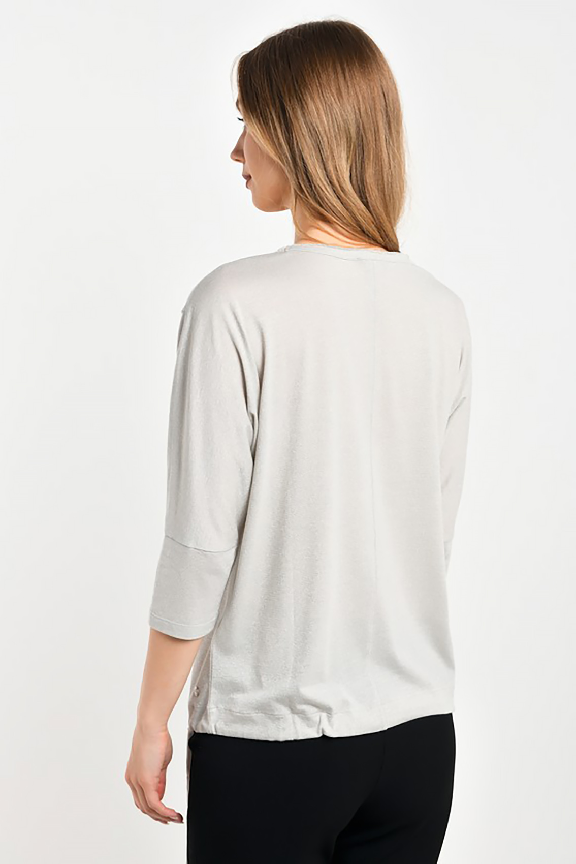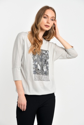 Свитшон свободного силуэта – практичный и стильный элемент повседневного стиля. Круглая горловина, втачной рукав 3/4 со спущенной линией плеча, широкие манжеты.
