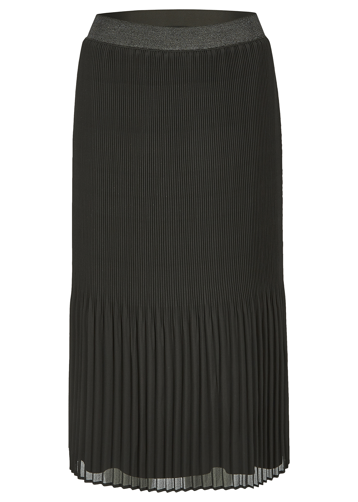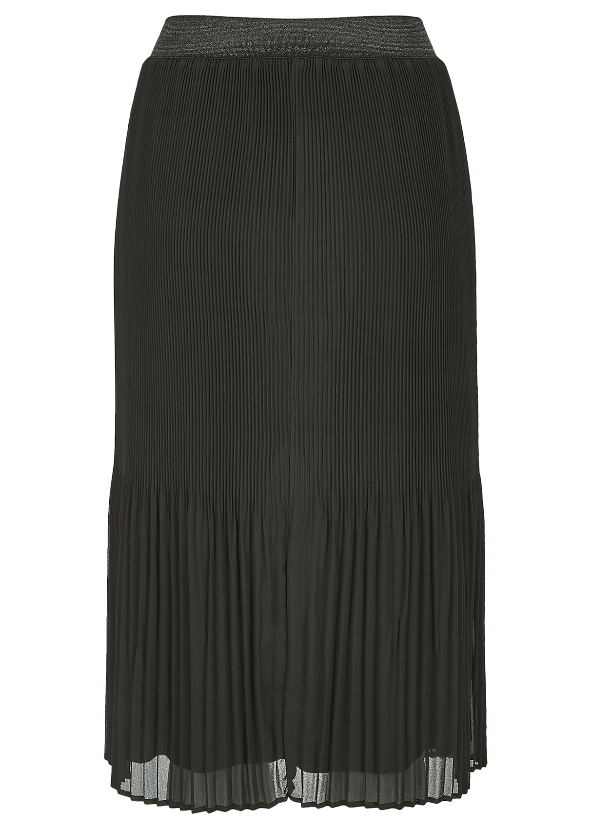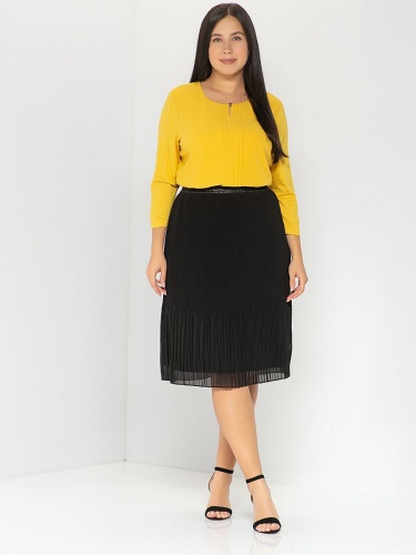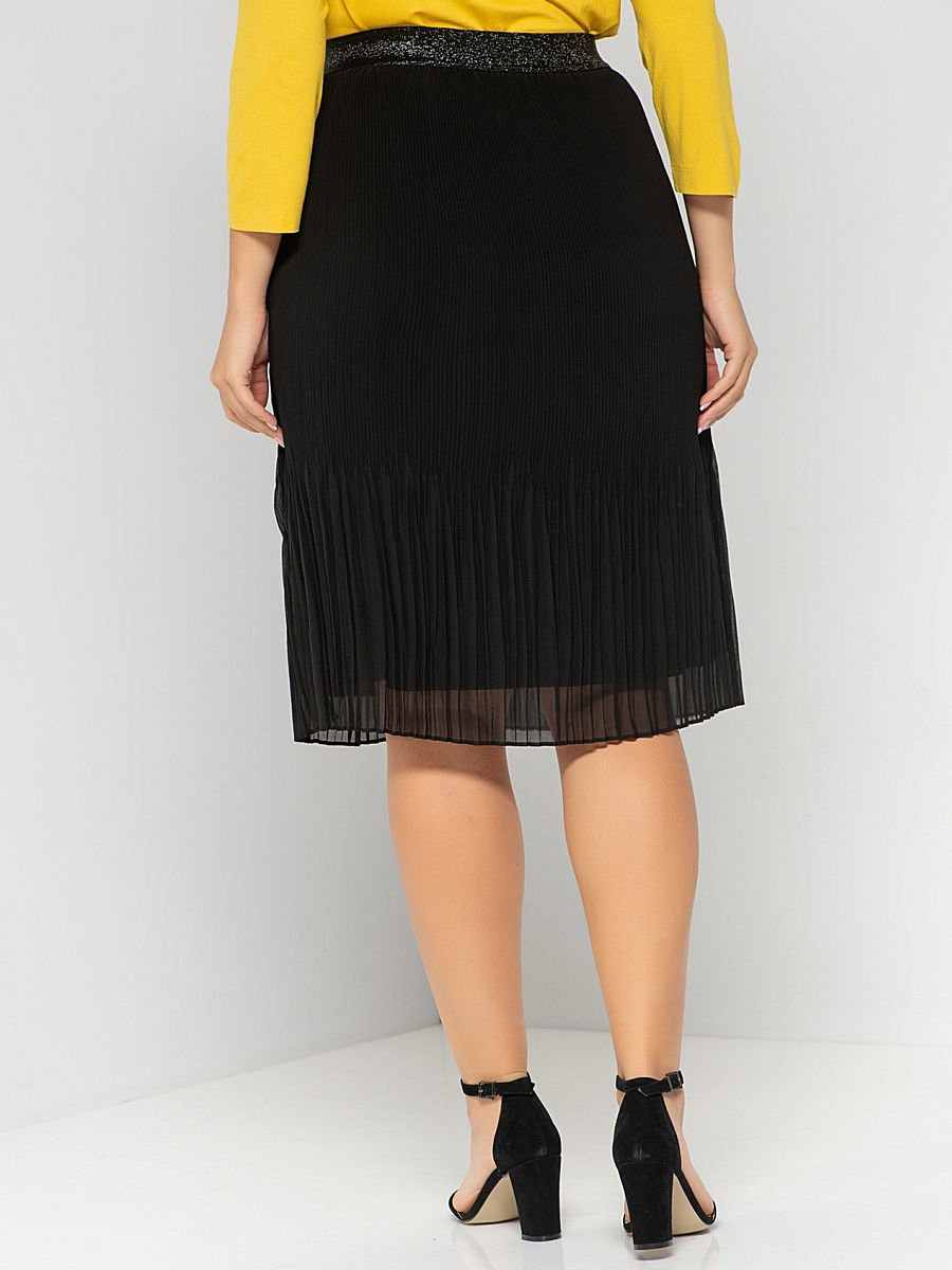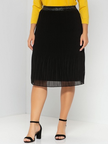 Базовая юбка миди - поистине универсальный элемент гардероба, который можно сочетать с любыми вещами и носить по любому поводу! Сочетание плиссировки различной ширины добавляет модели оригинальность. Ограняет модный образ эластичный пояс с блестящей нитью люрекса в составе.