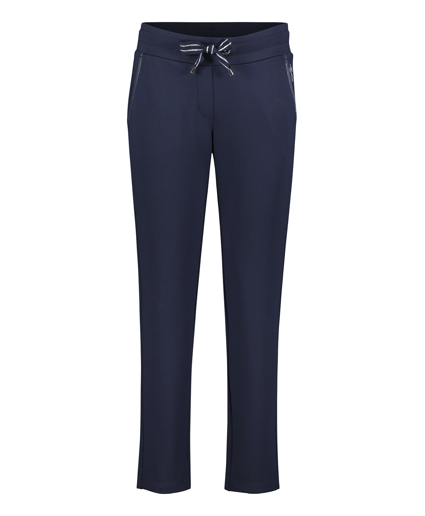 Быть спортивным - модно! А помогут в этом брюки в спортивом стиле. Прямой крой, средняя посадка, кулиска на талии. Карманы декорированы тесьмой. Материал из смеси вискозы, полиэстера и эластана приятен к телу и обеспечивает свободу движений. Эти брюки идеально подходят для прогулок и занятий спортом.
