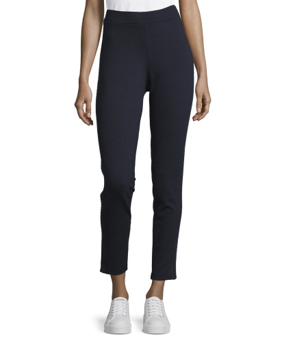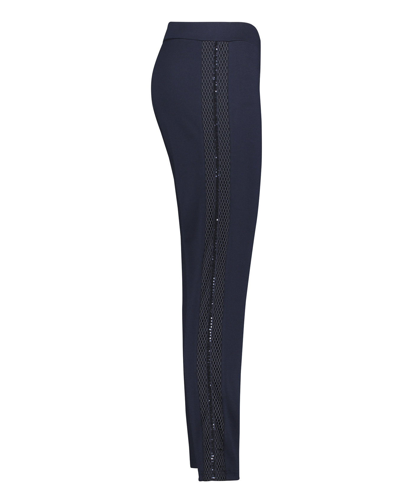 Брюки в спортивном стиле помогут угнаться за модой! Удобная средняя посадка, силуэт slim. Элегантный декор - вставка из сетчатого материала и тесьма с пайетками по бокам. Материал из вискозной смеси приятен к телу и обеспечивает комфорт. Эта модель - отличный выбор для прогулки по городу.