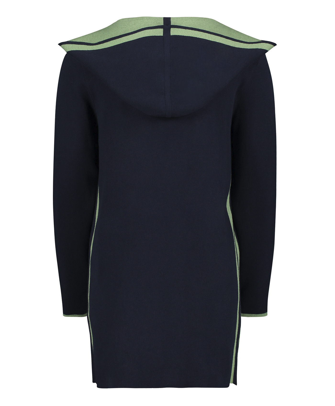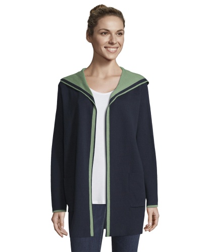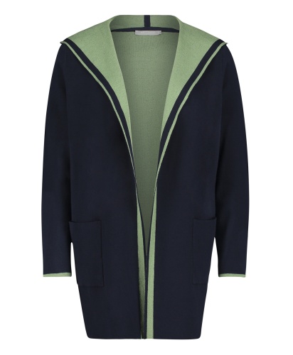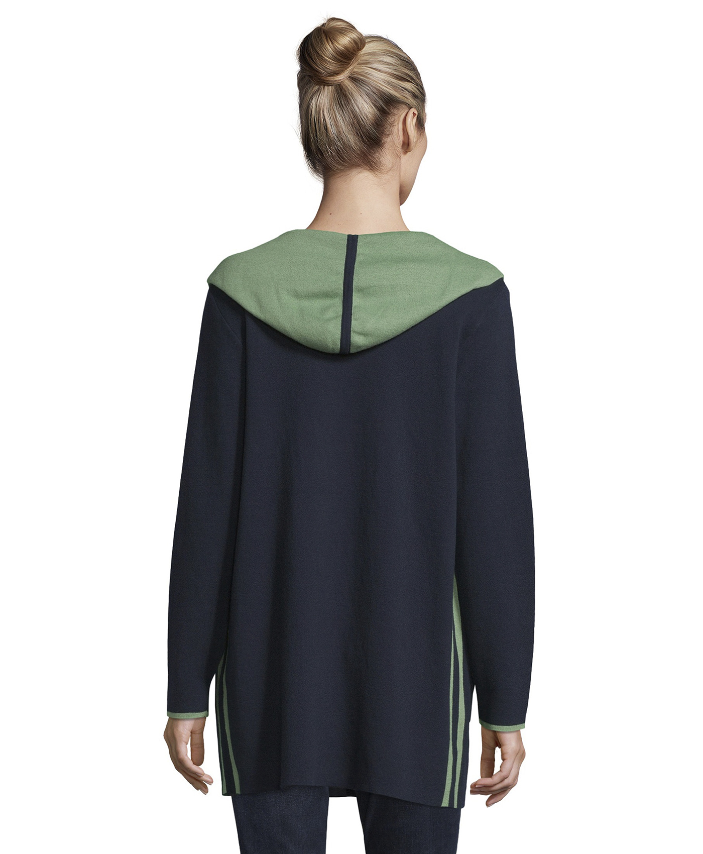 Кардиган с капюшоном. Прямой покрой, длинные рукава, карманы на переде изделия. Сочетание контрастных цветов придает этой модели стильные акценты. Материал из смеси хлопка и эластана обеспечивает комфорт и отличную посадку. Кардиган - необходимая базовая вещь для прохладной погоды.