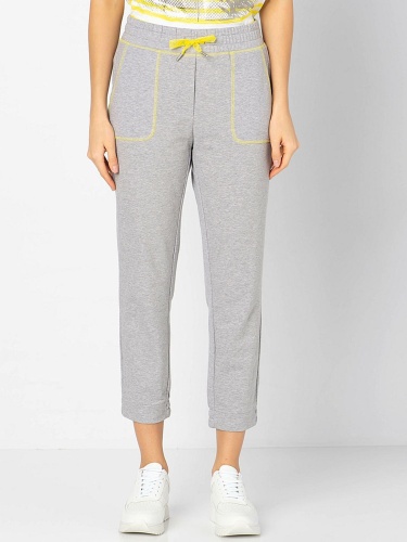 Укороченные спортивные брюки без утепления. Средняя посадка. Эластичная лента на поясе. Прорезные карманы. Яркая декоративная отстрочка. Приятный к телу материал из смеси хлопка и эластана. Длина изделия по внутреннему шву: 73 см.