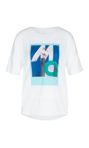 Футболка с принтом. Прямой крой с удлиненной спинкой изделия, круглый вырез горловины, короткий втачной рукав. Приятный к телу материал из хлопковой смеси.