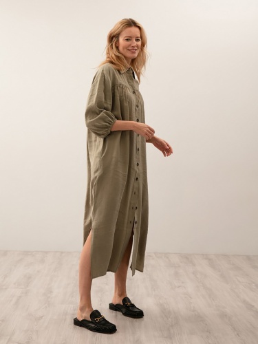 Платье прямого силуэта,удлиненное . С центральной застежкой на пуговицы.Рукав втачной с резинкой по низу. По переду кокетка со сборкой. В комплекте идет ремень из экокожи.