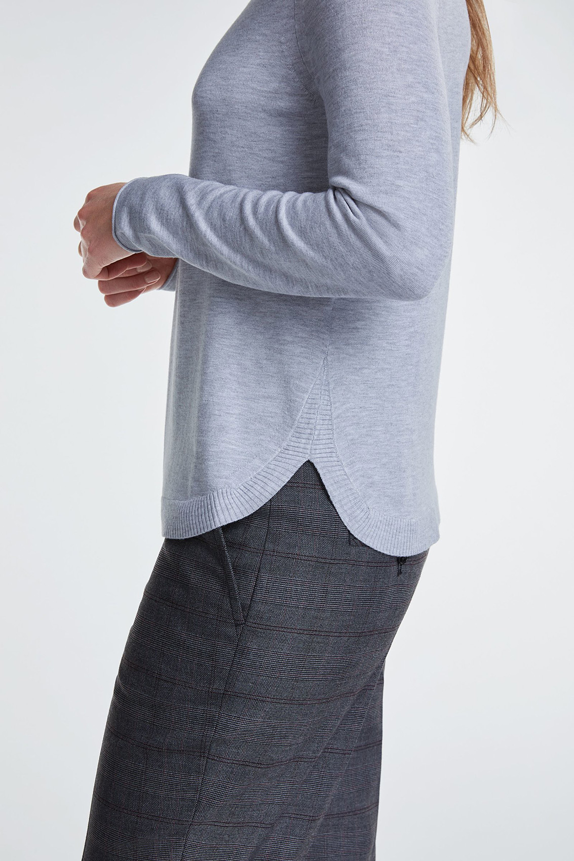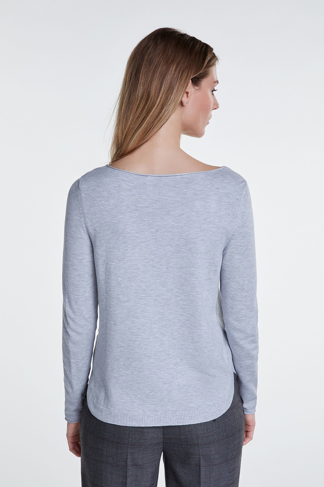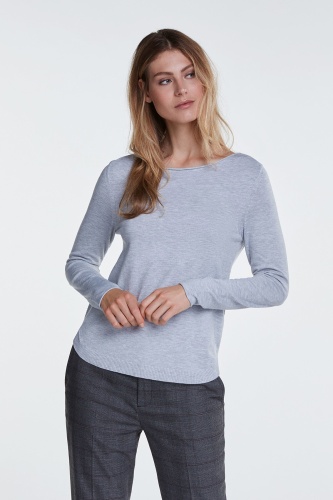 Джемпер полуприлегающего силуэта - базовая модель. Вырез горловины "лодочка", рукава полной длины, фигурный низ изделия. Приятный к телу материал из вискозной смеси.