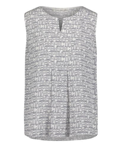 Свободный покрой - тренд сезона! Сплошной принт с надписью создает вау-эффект. Приятный к телу материал из смеси вискозы, тенсела и льна обеспечивает комфорт в ношении. Этот абсолютно стильный топ отлично сочетается с любым вариантом низа.