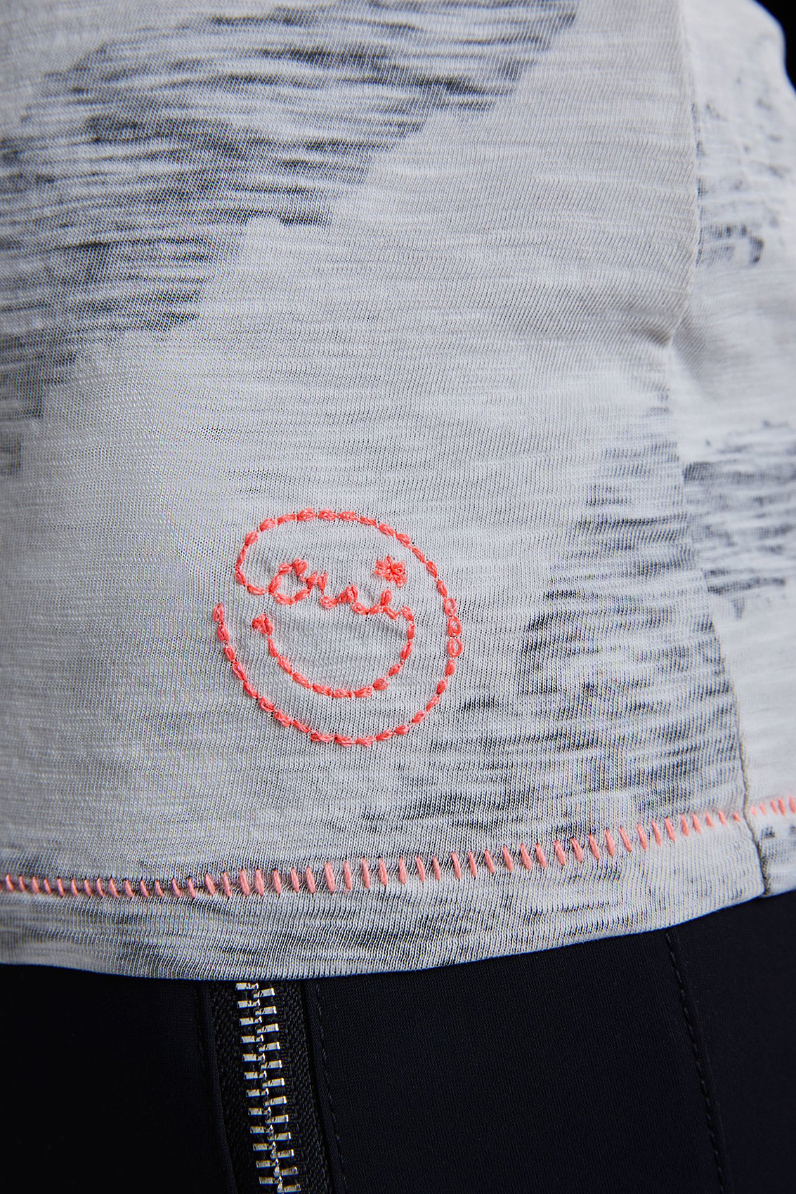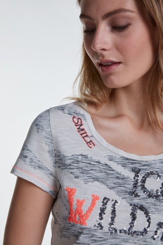 Футболка полуприлегающего силуэта с анималистическим принтом и пайетками. Круглый вырез горловины, короткие втачные рукава, декоративная отстрочка контрастного цвета. Приятный к телу хлопковый материал обеспечивает комфорт.