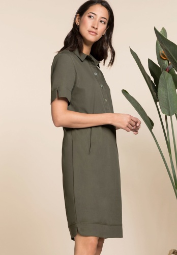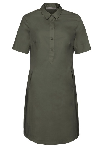 Платье-рубашка Dorine представлено в актуальном трендовом цвете. Изготовленное из эластичной смеси хлопка и полиамида, платье легкое и приятное к телу. Спортивное платье-рубашка с карманами и стильными перламутровыми пуговицами, Dorine идеально подходит для повседневного образа. • платье-рубашка с пуговичной планкой и воротником поло • эластичная смесь хлопка и полиамида • прорезные карманы, рукав 1/2, прямой крой • длина юбки около 56 см, рост модели около 180 см • при росте 168 см платье будет до середины колен