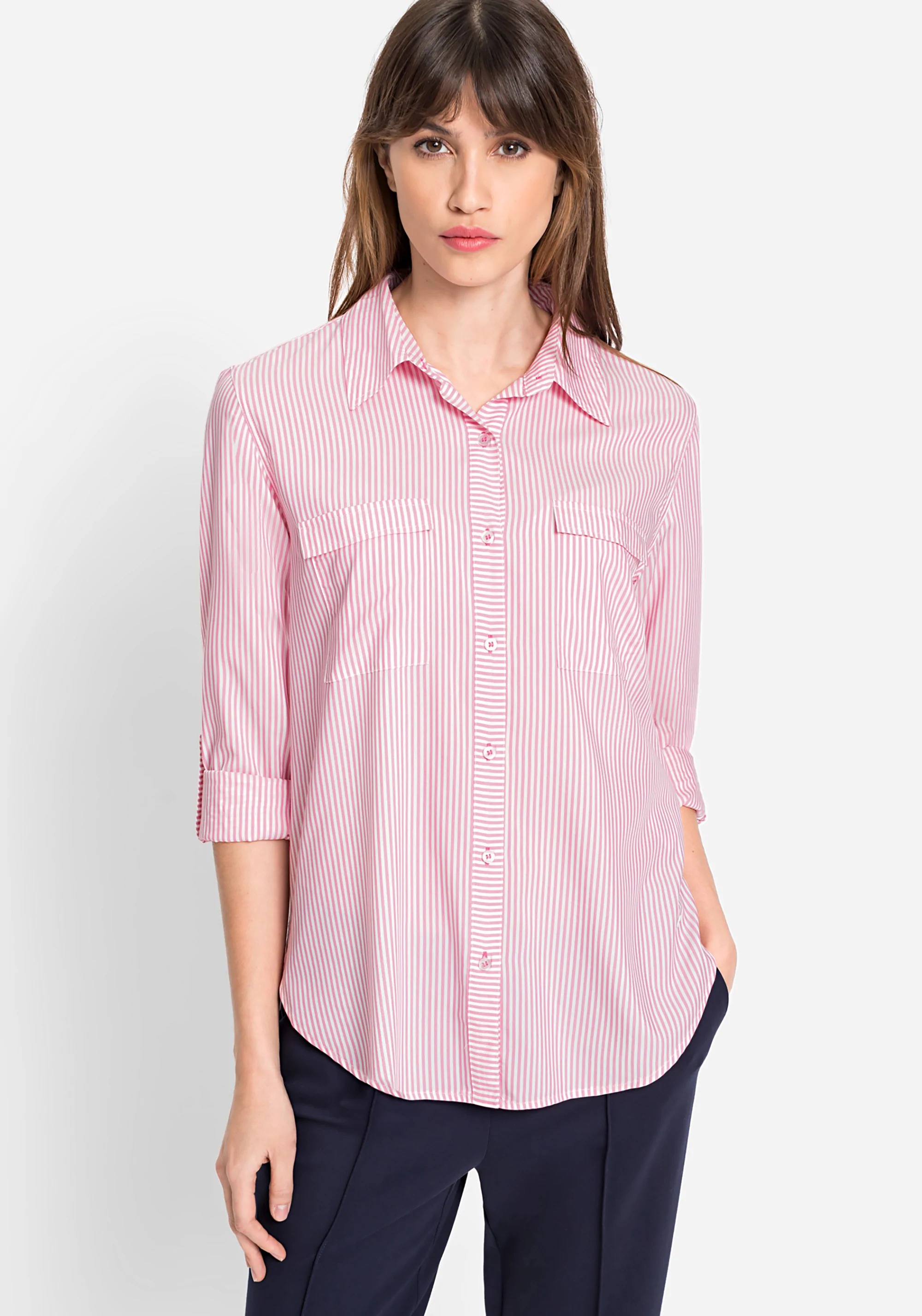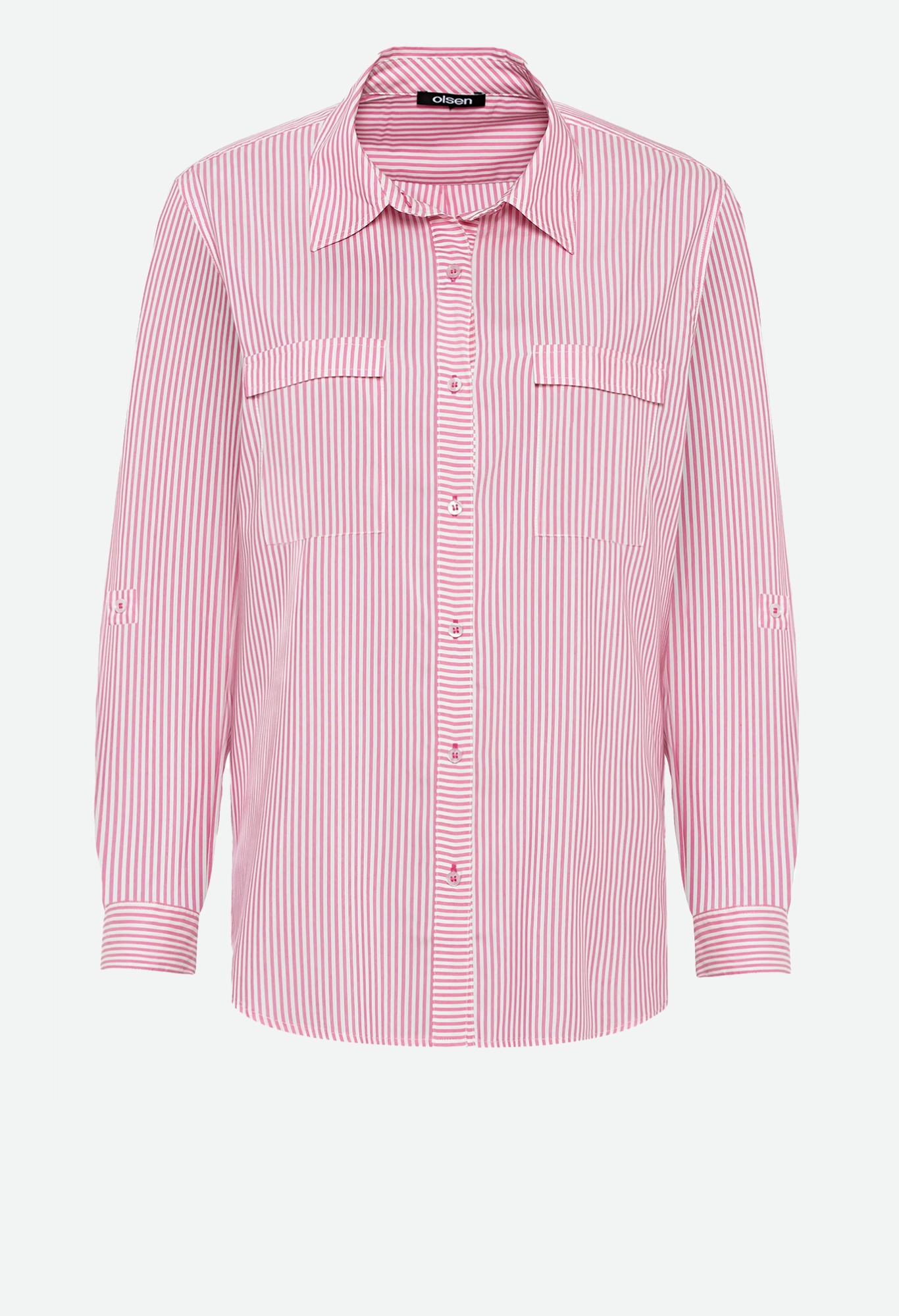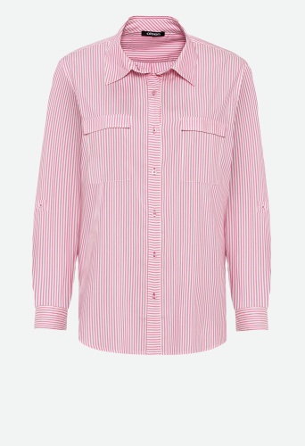 На сайте указаны Российские размеры. Классическая рубашка в полоску с двумя карманами спереди.