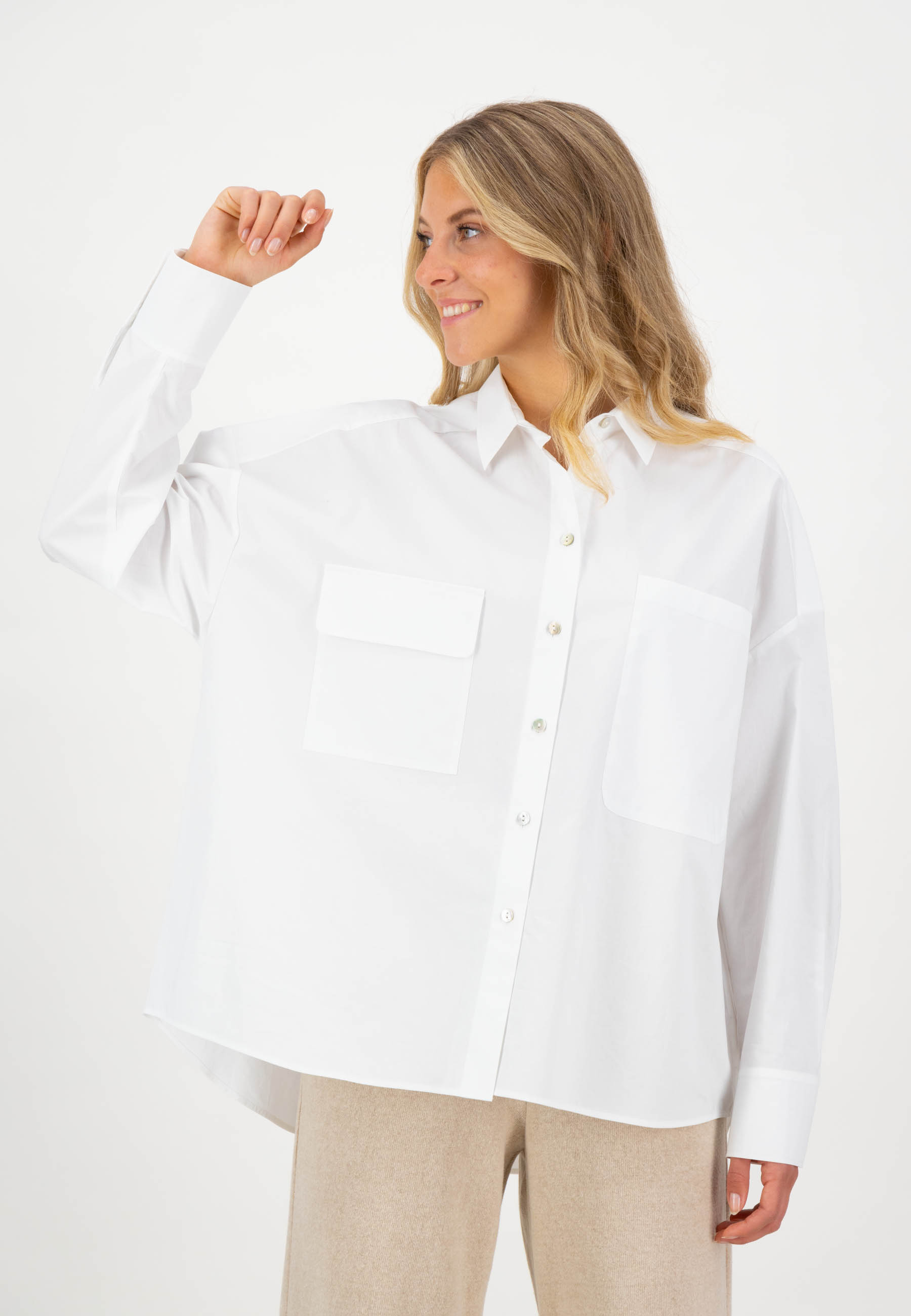 На сайте указаны российские размеры. Повседневная блуза оверсайз с нагрудными карманами. Благодаря свободному крою, широким плечам и складкам на спине блузка выглядит особенно непринужденно. Накладные нагрудные карманы ослабляют классический модный образ и завершают спортивный стиль, создавая современный образ. Наша модель ростом 177 см. Измерения для 44 размера: Окружность груди: 138 см Бедра: 141 см Длина по спинке: 72 см. Длина рукава: 49 см.
