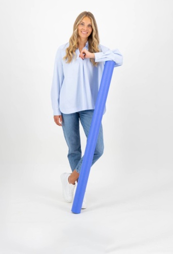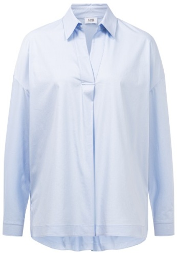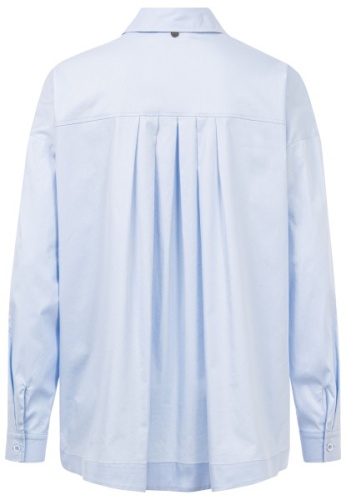 На сайте указаны российские размеры. Оверсайз блузка с манжетами на рукавах и стильным воротником-стойкой из переработанных материалов. Благодаря повседневному крою, закругленному низу и плиссированным деталям на спине эта блузка, безусловно, является одной из самых модных в этом сезоне. Рост модели 177 см. Измерения для 44 размера: Окружность груди: 158 см Бедра: 154 см Длина по спинке: 72 см. Длина рукава: 50 см