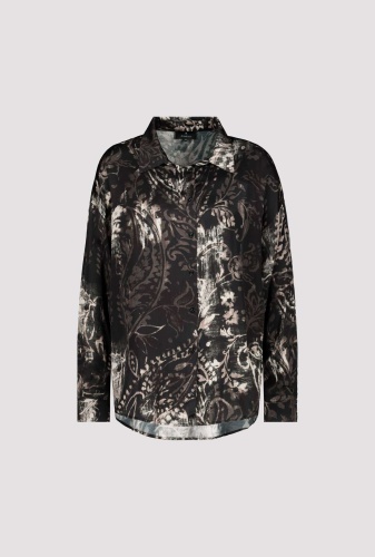 На сайте указаны российские размеры. Блузка с воротником-стойкой и принтом пейсли по всей поверхности. Рубашка-фасон с классическим рубашечным воротником, блуза-рубашка прямого кроя с удлиненной спиной и закругленным низом. Планка с пуговицами, манжеты на двух пуговицах на концах рукавов и кокетка со стильной коробчатой складкой на спине завершают дизайн изящно струящейся модели. Не отказывайтесь от эксклюзивной модели из вискозы с принтом пейсли по всей поверхности. Отлично подойдут к светлым брюкам в стиле карго с модными кроссовками. Рост модели 175 см. Длина по спинке 44 размера составляет 74 см, а по переду – 70 см.