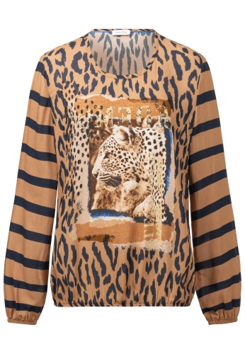 На сайте указаны российские размеры. Несложная, неподвластная времени, ценная - эти характеристики идеально описывают шикарную блузку-рубашку. Высококачественный материал придает рубашке максимальный комфорт и струящийся легкий вид. Захватывающий дизайн делает эту рубашку модной вещью. Практичная резинка по низу и на рукавах обеспечивает идеальную посадку рубашки и сохраняет ее повседневную посадку. Наша модель ростом 177 см. Измерения для размера 44: Окружность груди: 104 см Талия: 103 см Бедра: 114 см Длина по спинке: 62 см. Длина рукава: 62 см.