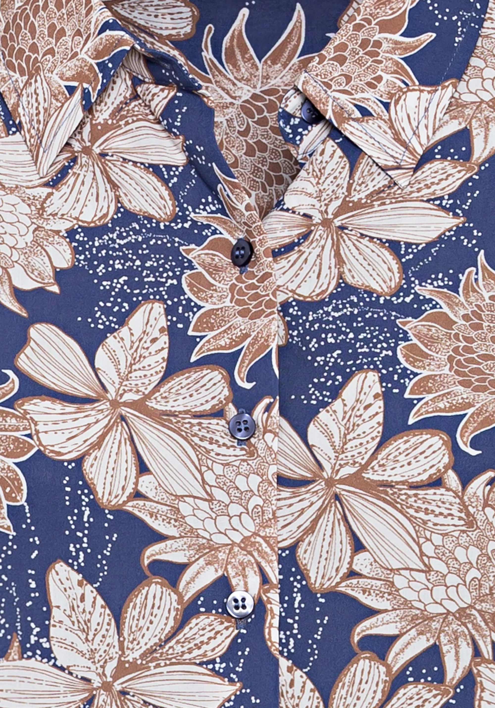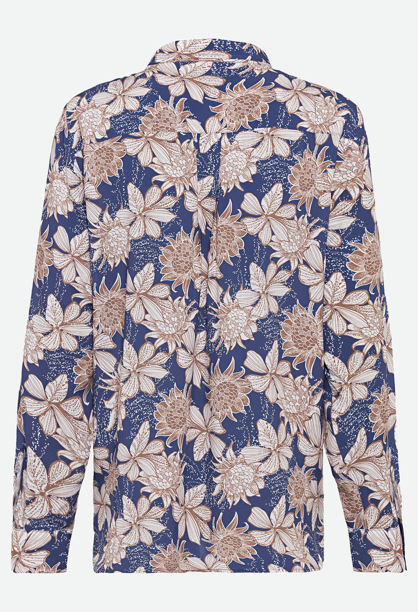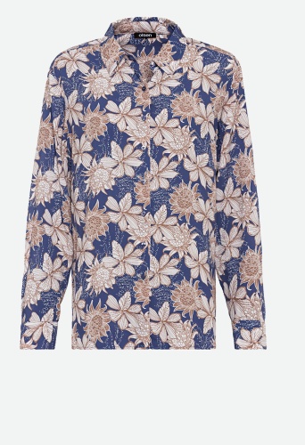 На сайте указаны Российские размеры. Блуза с женственным цветочным принтом передает классический силуэт и утонченный стиль с воротником, сплошной планкой на пуговицах и манжетами на пуговицах. Блузка сзади немного длиннее, чем спереди.