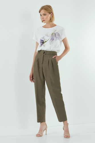 Блузка выполнена в прямом силуэте с цельнокроенными рукавами и принтом цветка.
