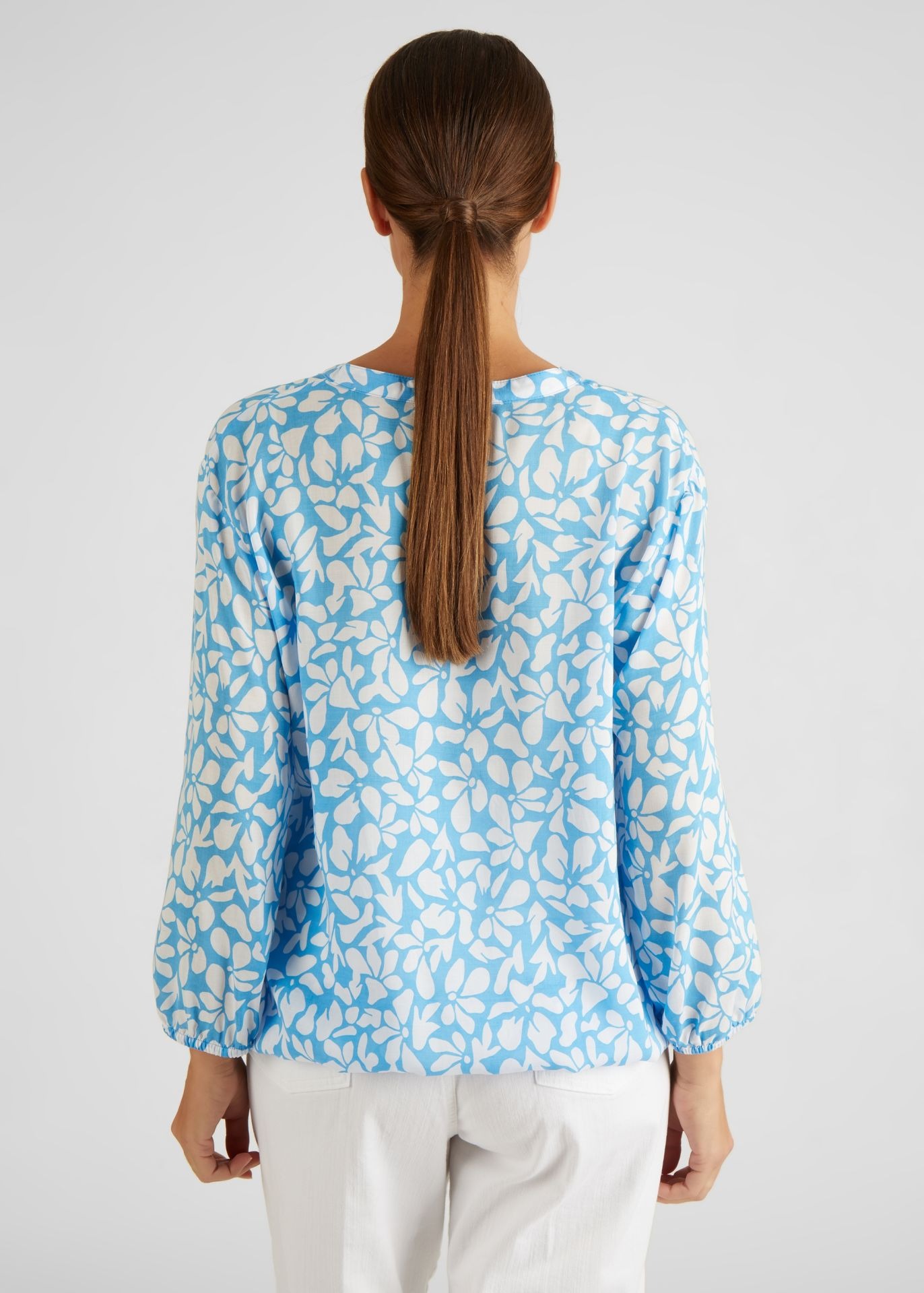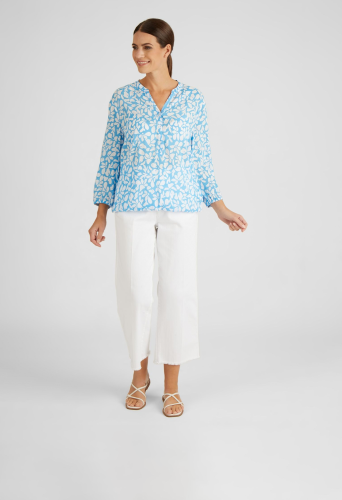 Блузка с абстрактным узором и небольшим воротником-стойкой — стильный предмет гардероба на все случаи жизни. V-образный вырез на пуговицах, эластичные манжеты и нижняя кромка обеспечивают удобную посадку и адаптируются к любой фигуре. Прямой крой предлагает современный дизайн, который идеально сочетается с джинсами, брюками или юбками. Изготовленная из 100% вискозы, блузка приятна на ощупь и приятна на ощупь. Длина рукава 3/4 идеальна для весны и лета. Эта блузка станет незаменимой вещью для каждой женщины, следящей за стилем, и прекрасным подарком для ваших близких.
