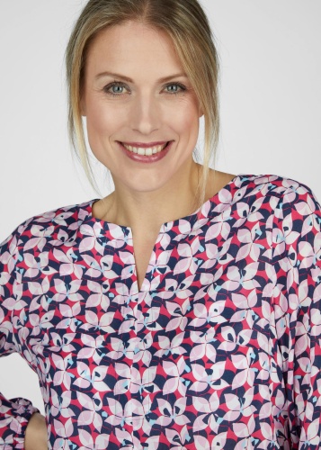 Элегантная блузка с воротником-стойкой, которая создаст неподвластный времени и шикарный образ. Блузка украшена красивым цветочным узором по всей поверхности, который придает нотку свежести и женственной утонченности. Длинные рукава обеспечивают дополнительный комфорт и стиль, а эластичные манжеты придают современный вид и обеспечивают удобную посадку. V-образный вырез тонко подчеркивает декольте и идеально дополняет общий образ. Эта блузка, изготовленная из высококачественной 100% вискозы, гарантирует вам удобную посадку и привлекательный внешний вид. Идеально подходит для разных случаев жизни: от повседневных повседневных нарядов до шикарных вечерних образов.