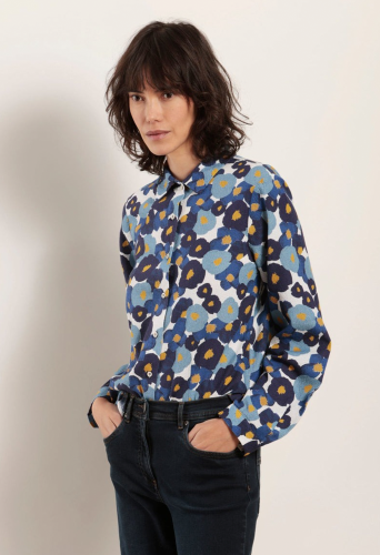 Рубашка с цветочным принтом из тисненого хлопка. Прямого покроя. Длинные рукава с небольшими манжетами. Нижние передние вытачки.