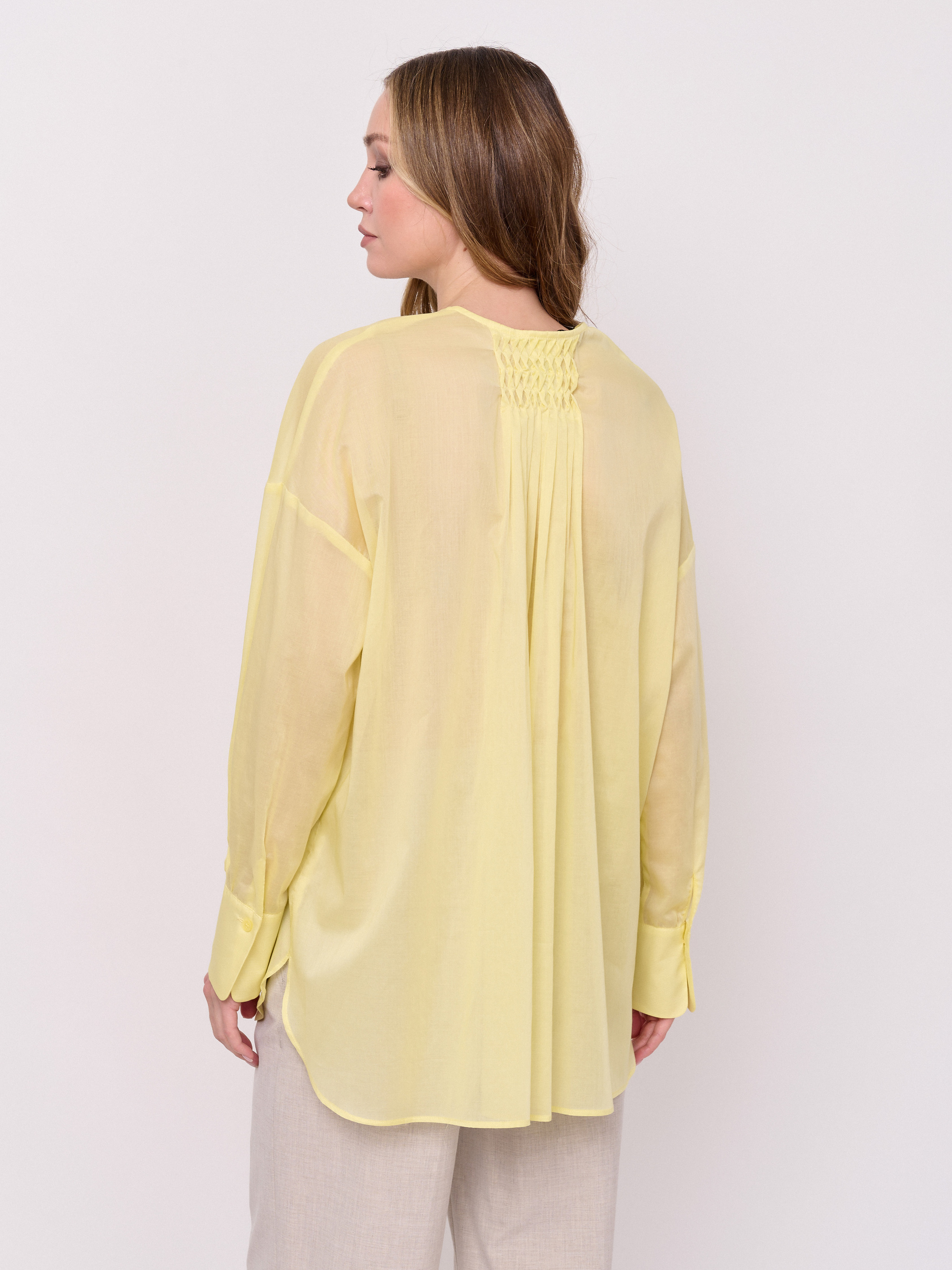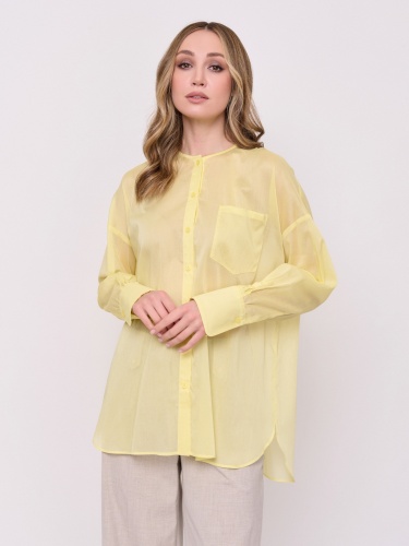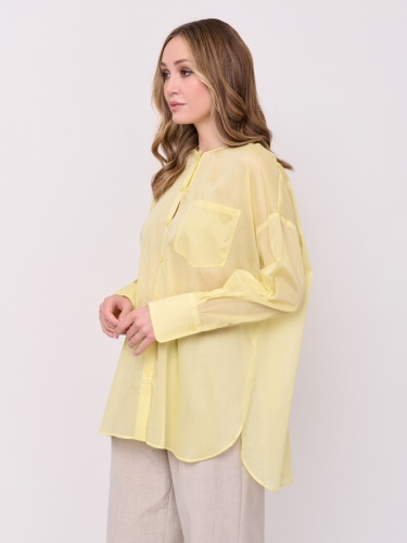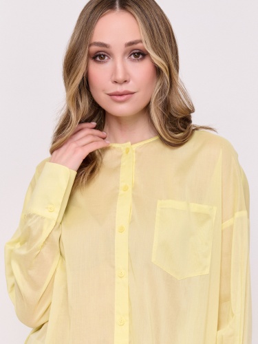Детали: батист, застежка пуговицы, вырез горловины округлый, рукава длинные, покрой рубашечный, без рисунка, боковые разрезы, накладной карман. Длина по спинке: 74 см.