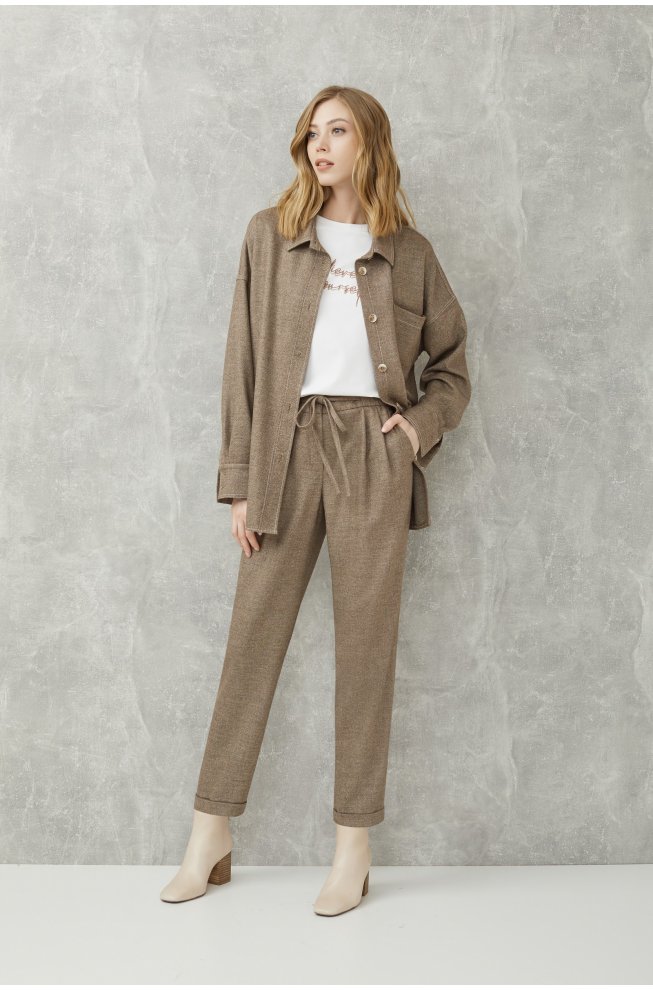 Однотонная блузка прямого кроя на пуговицах. Отложной рубашечный воротник, спущенная линия плеча. Свободный силуэт сглаживает недостатки фигуры и подчеркивает достоинства. Рубашку можно сочетать как с брюками из того же комплекта, так и с джинсами или юбкой.