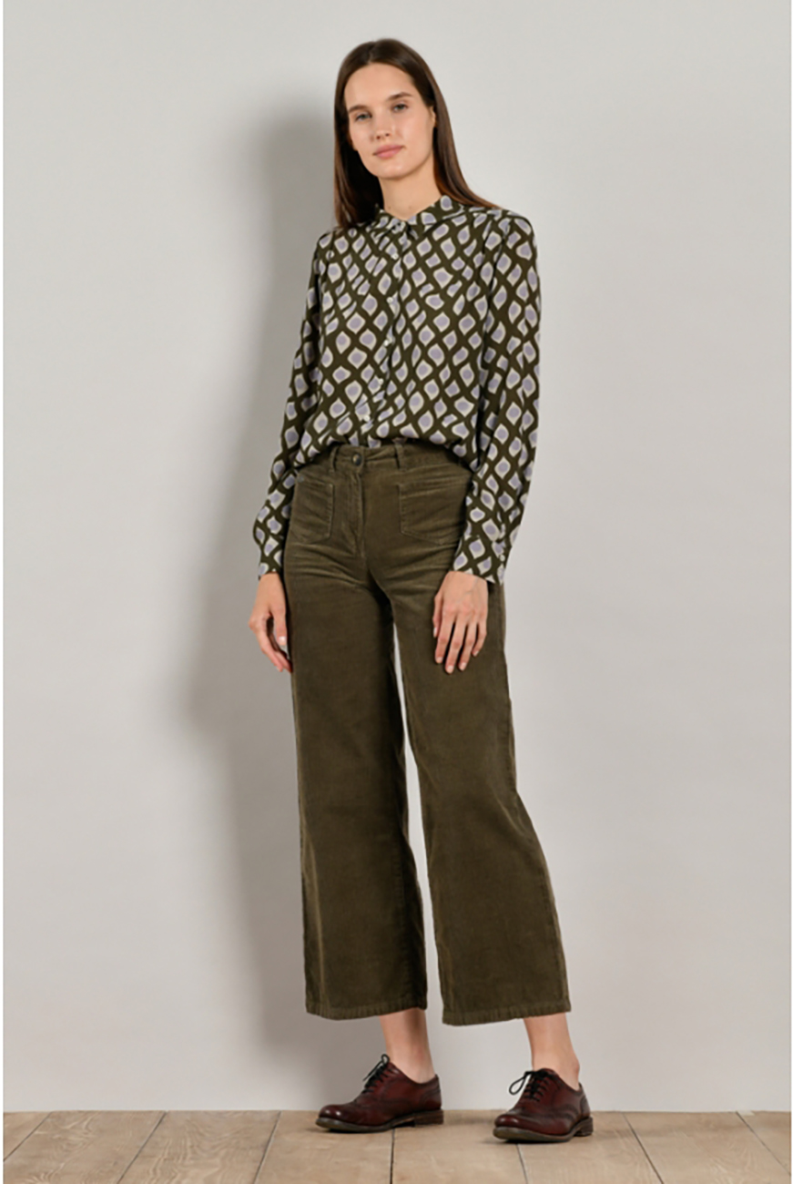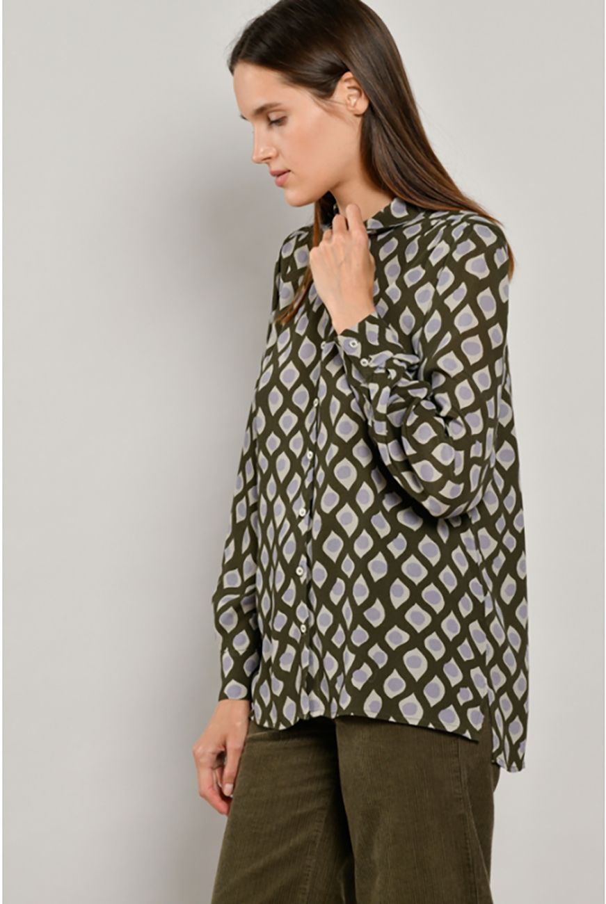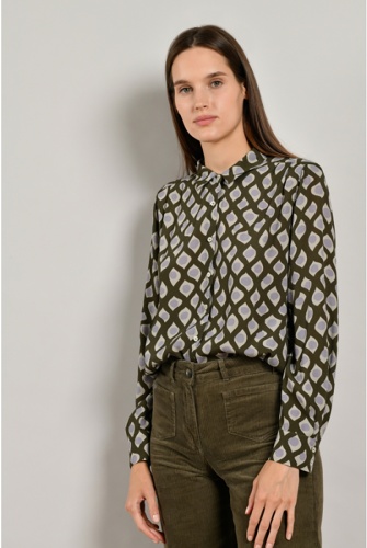 Блузка классического прямого кроя из вискозы приятна к телу и комфортна в носке. Застежка на пуговицах. Длинный втачной рукав на манжетах, отложной воротник.