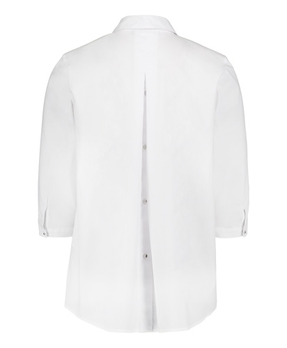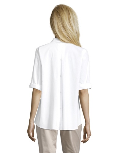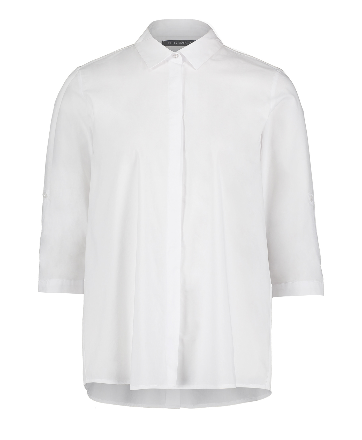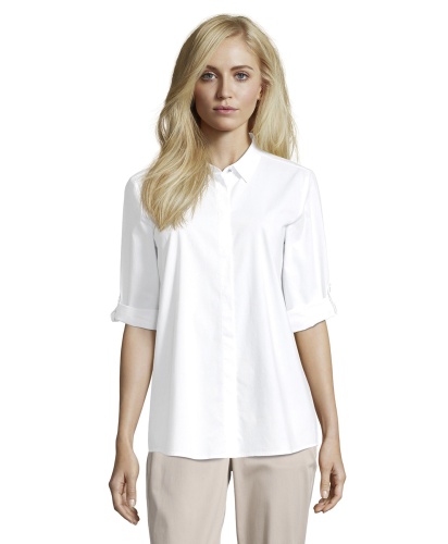 Однотонная блуза - поистине универсальная модель! Модный свободный покрой. Отложной воротничок, застежка на пуговицах, рукава 1/2. Элегантная деталь дизайна - декоративные пуговицы, спрятанные в складке на спинке. Приятный к телу материал из хлопковой смеси. В пару к этой лаконичной блузе можно подобрать практически любой вариант низа, что допускает множество модных сочетаний.