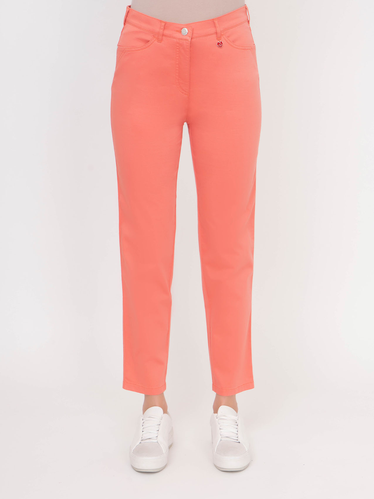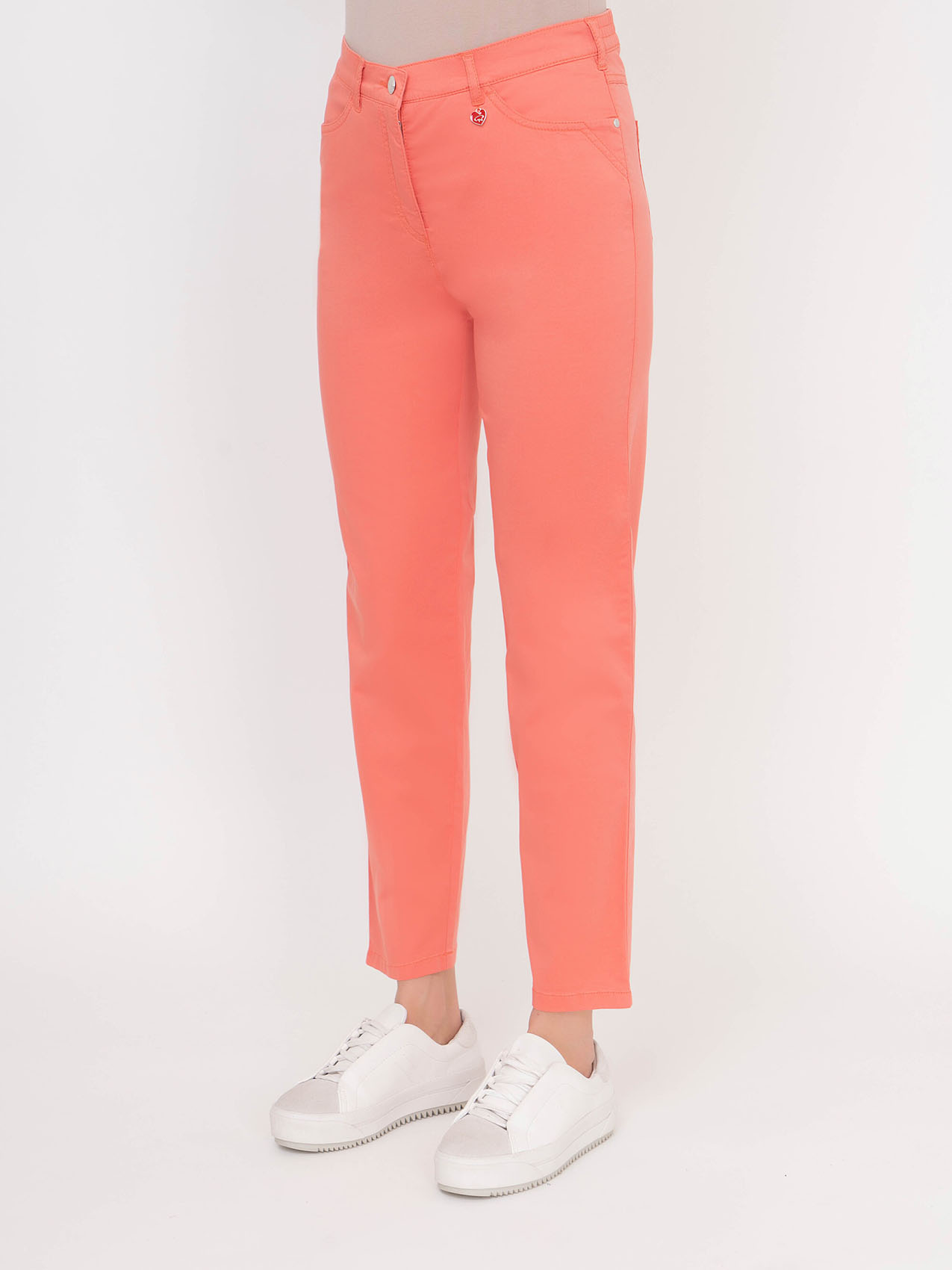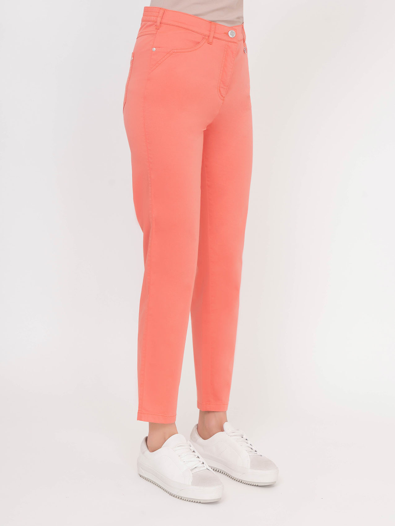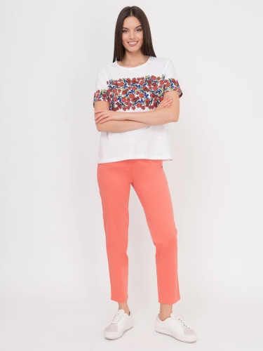 Яркий цвет этих брюк навевает мысли об отдыхе в теплых странах. Средняя посадка, прямой покрой, карманы. Эта модель прекрасно смотрится как с футболками, так и с блузами.