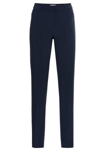 Костюмные брюки прямого кроя - это настоящая классика и мода, неподвластная времени. Удобная средняя посадка, узкий крой по бедрам, стрелки, прорезные карманы спереди и сзади. В сочетании с пиджаком брюки составляют завершенный комплект в деловом стиле. Эта модель - идеальный элемент базового гардероба.