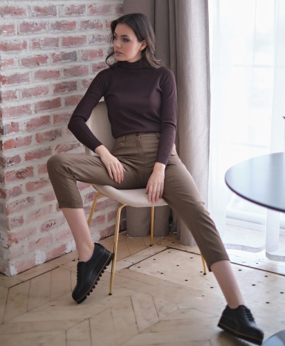 Брюки трендовой расцветки станут элементом капсульного гардероба, предполагают множество различных сочетаний. Длина до щиколотки, стрелки визуально увеличивают рост. Комфортная средняя посадка, замок-молния спереди, карманы спереди и один врезной карман с листочкой сзади.