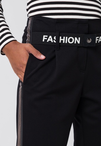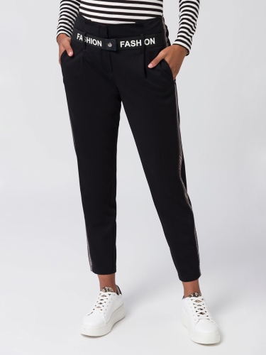 Однотонные брюки в спортивном стиле. Прямой силуэт, укороченная длина. Комфортная средняя посадка. Лампасы в цвете металлик сбоку брючин.