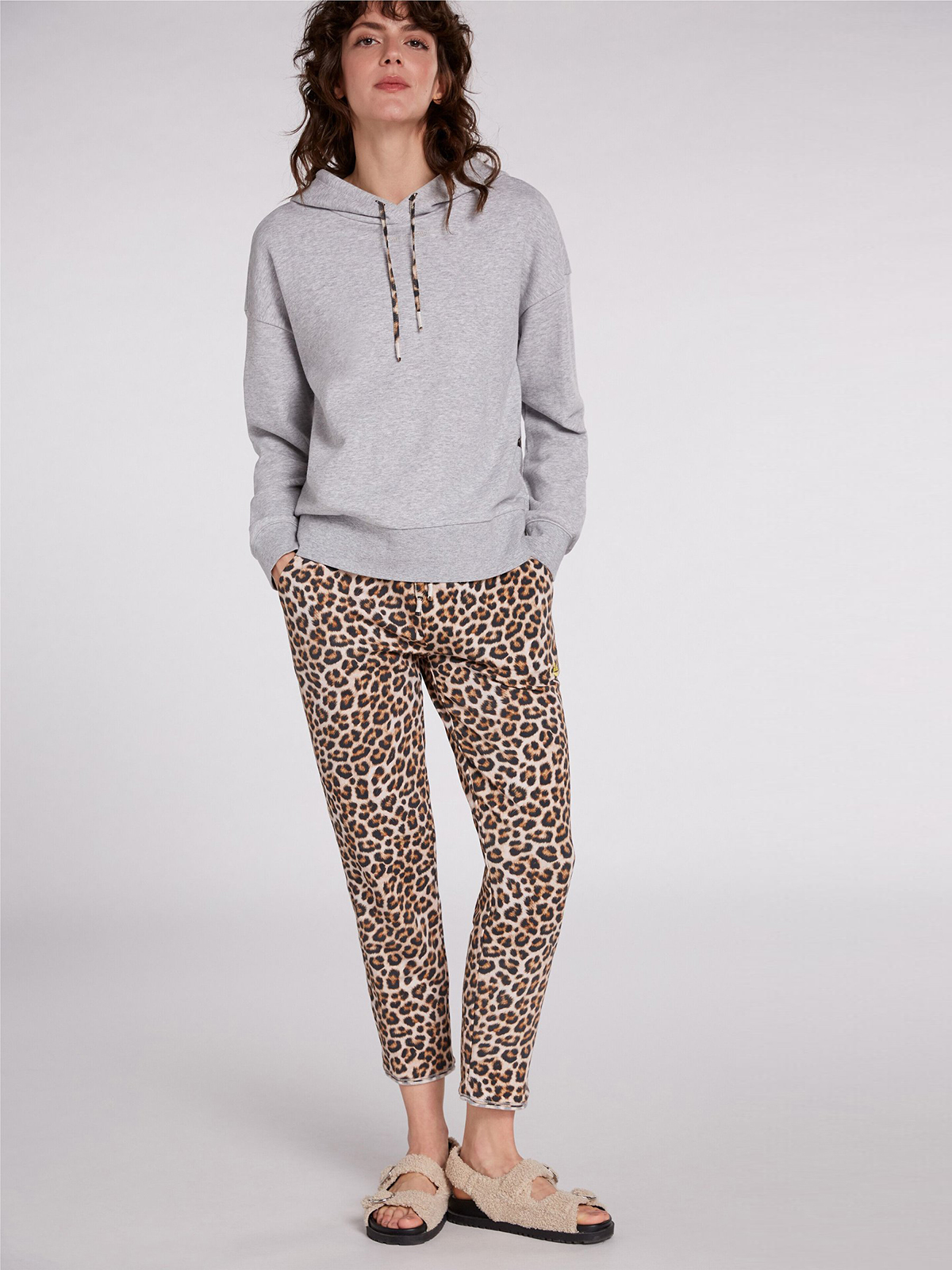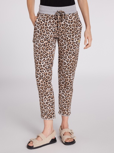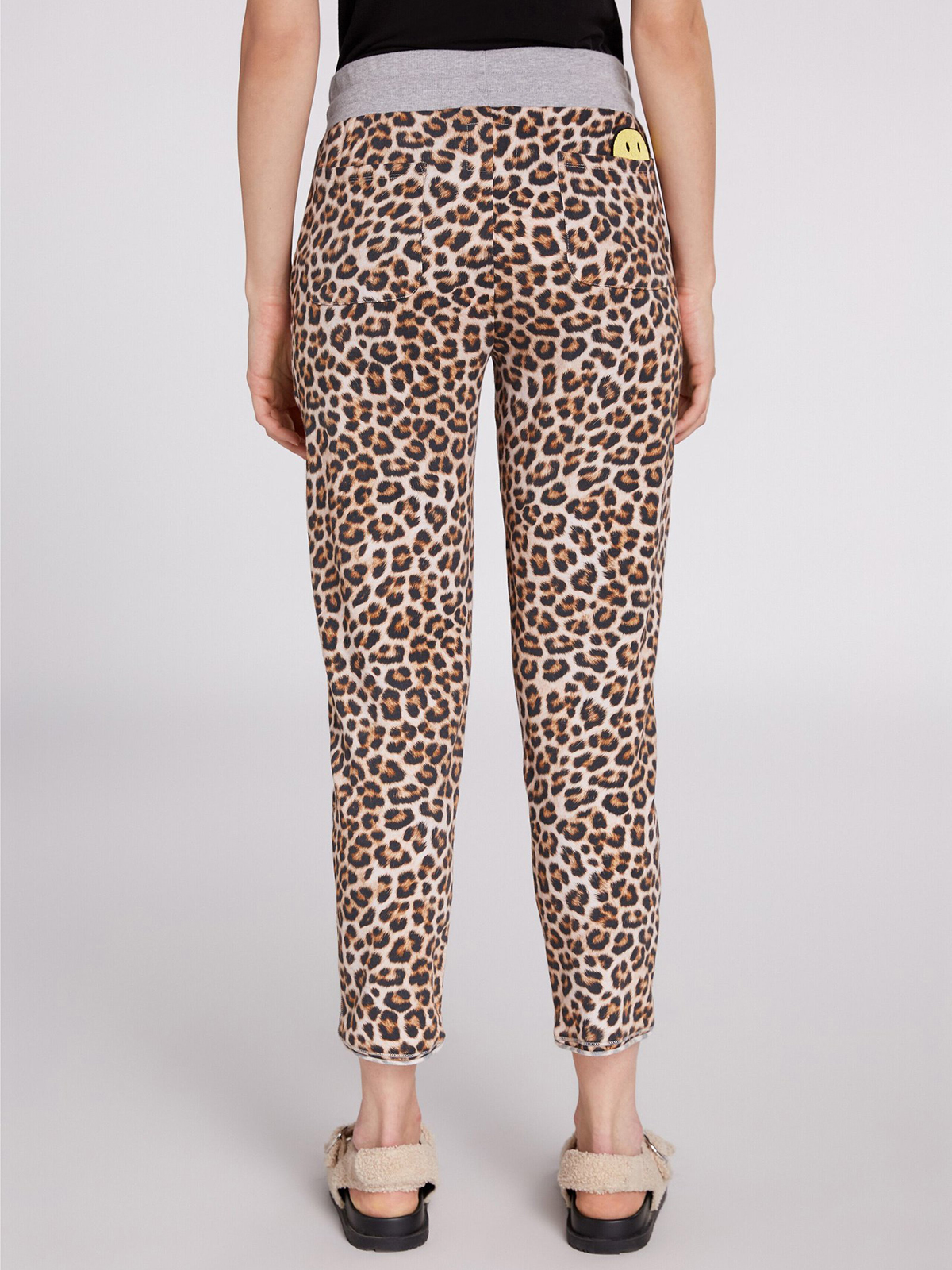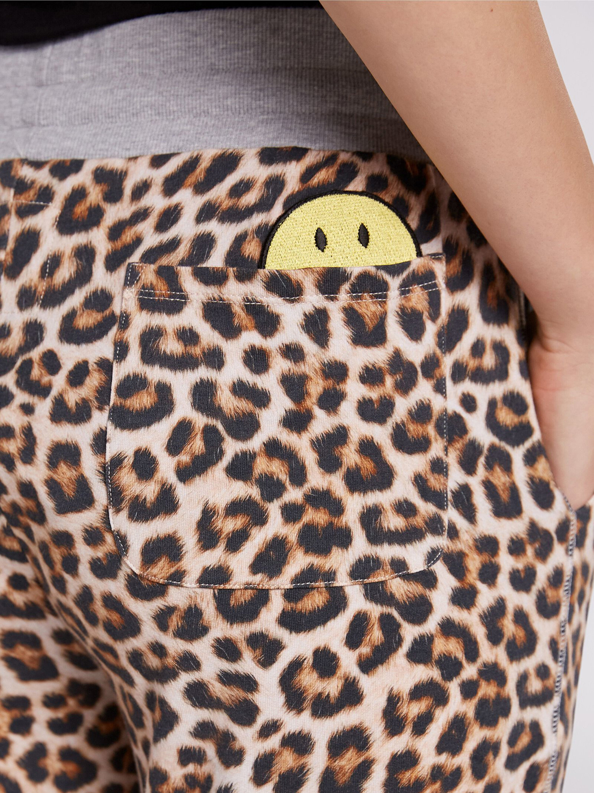 Укороченные трикотажные брюки в анималистичном дизайте. Спортивный стиль, силуэт slim. Притачной пояс с кулиской, средняя посадка.