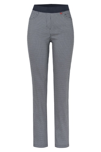 Брюки в мелкую клетку прямого кроя. Полная длина, комфортная высокая посадка. Эластичный пояс гарантирует удобство повседневного ношения. Милый акцент – сердечко-логотип у переднего кармана.