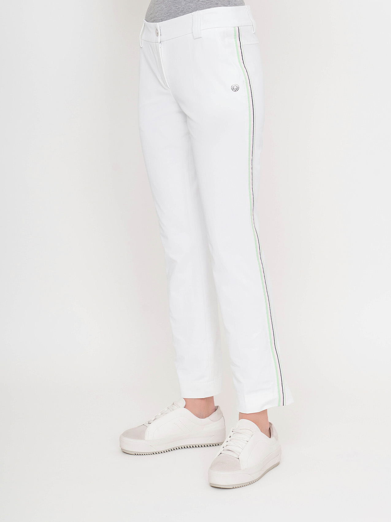 Светлые брюки - идеальный вариант для теплого сезона. Брюки средней посадки, прямого кроя. Декоративная тесьма по бокам, боковые карманы. Эта модель - универсальная пара для любого модного образа.