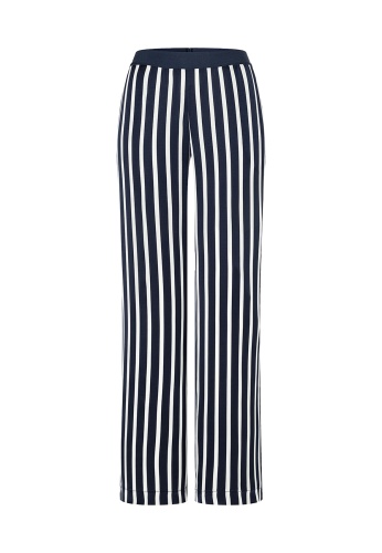 Широкие прямые брюки - неоспоримый тренд! Средняя посадка. Принт в полоску визуально вытягивает силуэт. Приятный к телу вискозный материал обеспечивает комфорт.