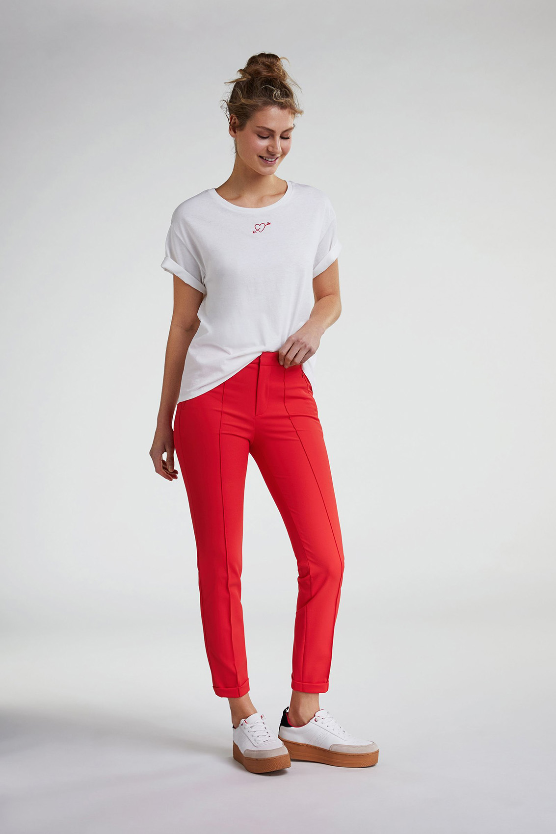 Яркие брюки для яркой особы! Удобная средняя посадка, силуэт slim подчеркивает стройные ноги. Стрелки делают эту модель более классической. Эти брюки станут стильным акцентом в любом образе.