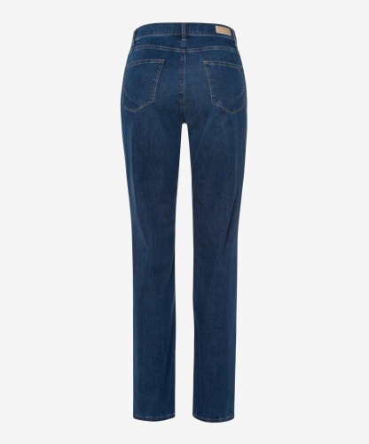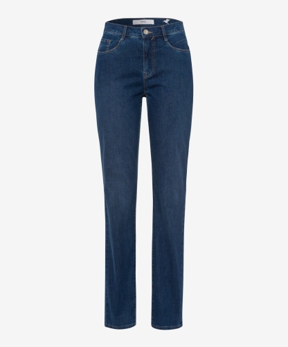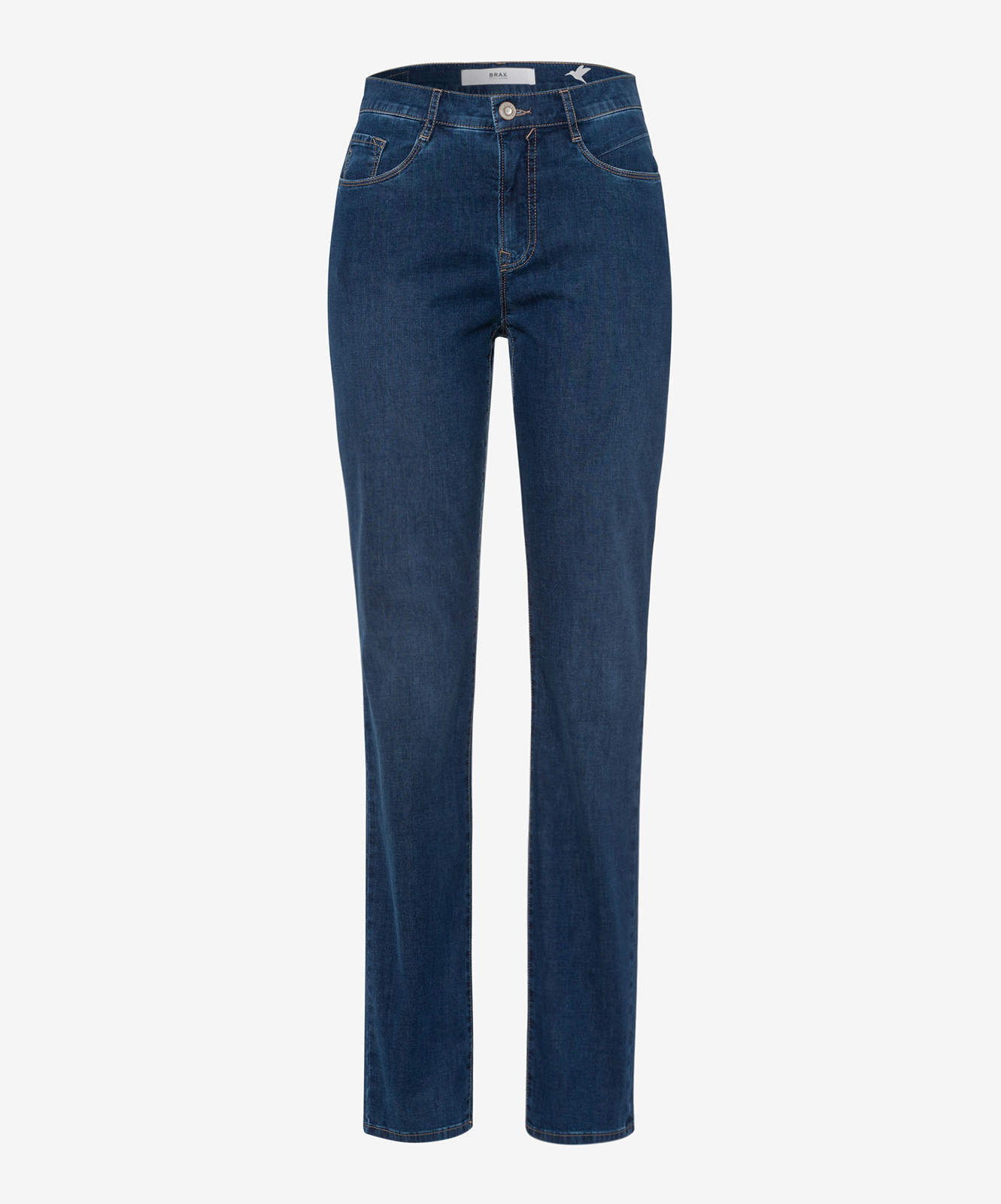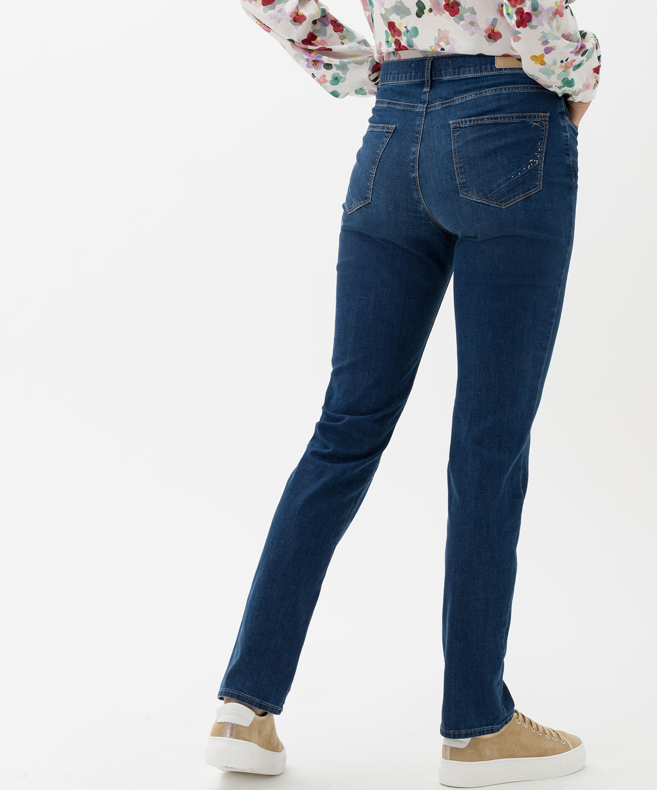Однотонные темно-синие джинсы силуэта слим. Высокая посадка обеспечивает комфортное ношение. Пояс со шлевками, застежка на пуговицу и скрытую молнию. Врезные карманы спереди и два накладных кармана сзади.
