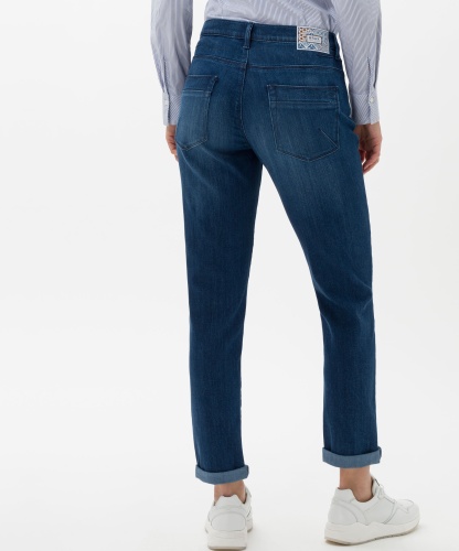 Однотонные джинсы силуэта слим с декоративными затертостями. Средняя посадка обеспечивает комфортное ношение. Пояс со шлевками, застежка на две пуговицы и скрытую молнию. Изогнутые внутренние карманы спереди и два накладных кармана сзади.