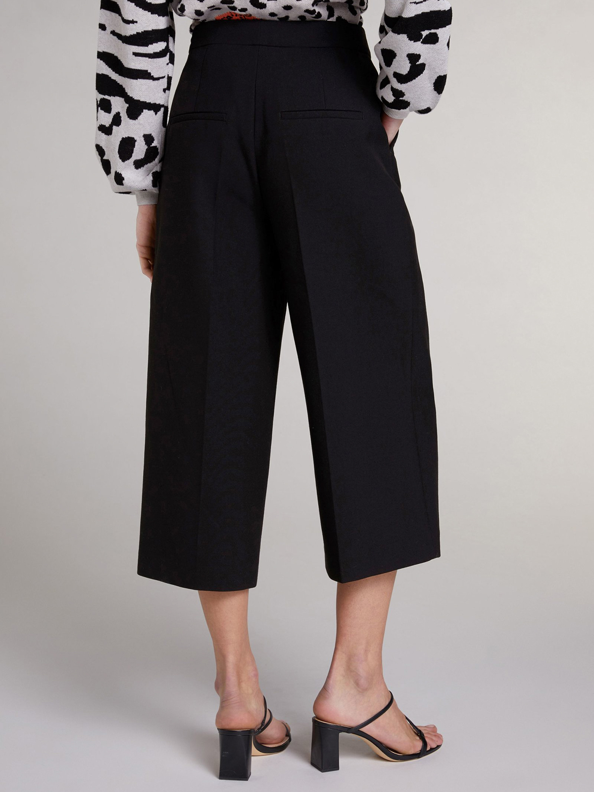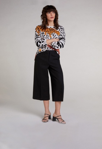 Кюлоты – бесспорный тренд этого сезона, прекрасно подходят как для делового, так и повседневного городского стиля. Комфортная высокая посадка. Застежка на скрытую молнию и крючок. Боковые внутренние карманы, прорезные карманы с листочкой сзади. Кюлоты можно надеть как с каблуком, так и с кроссовками.