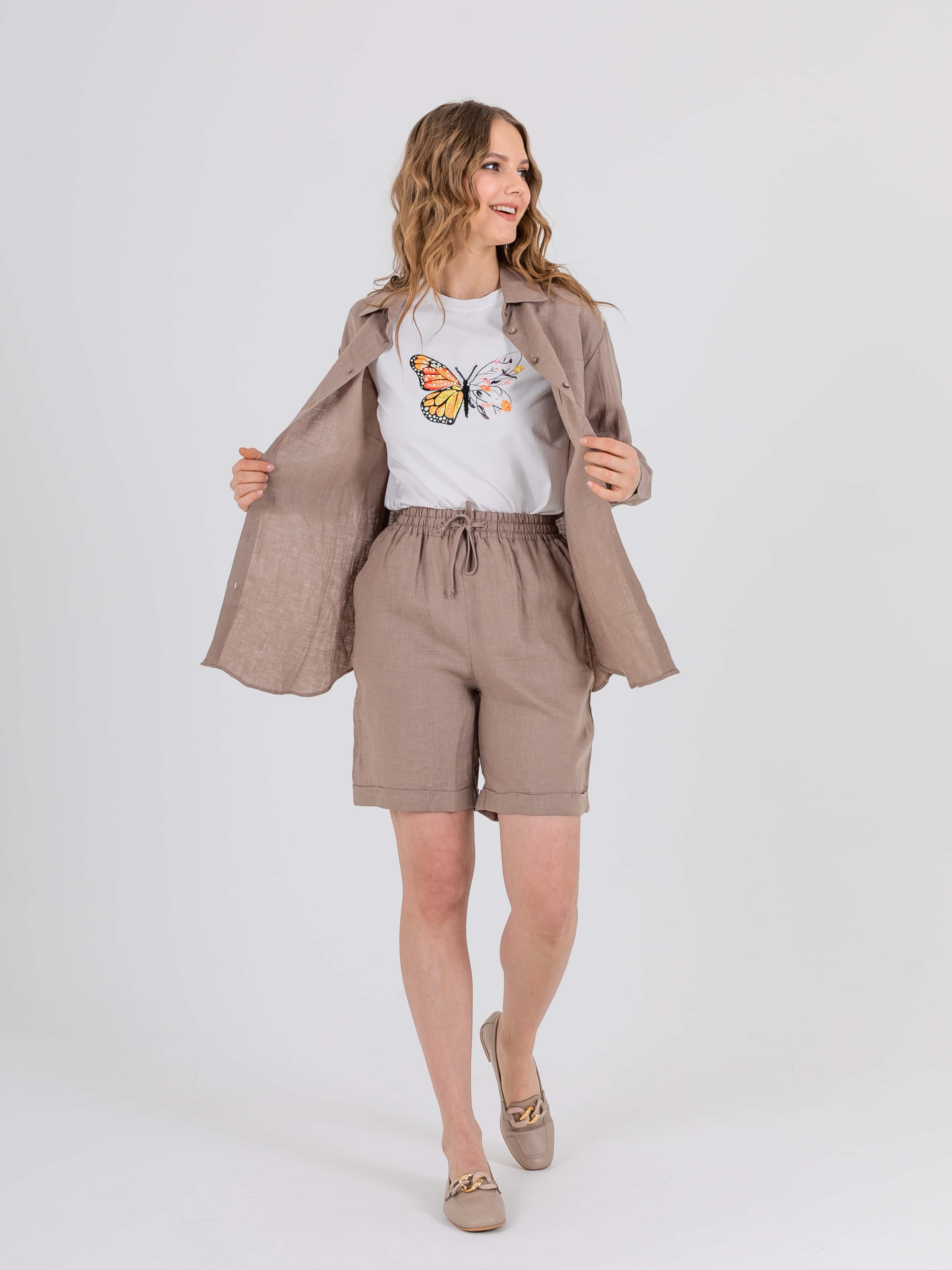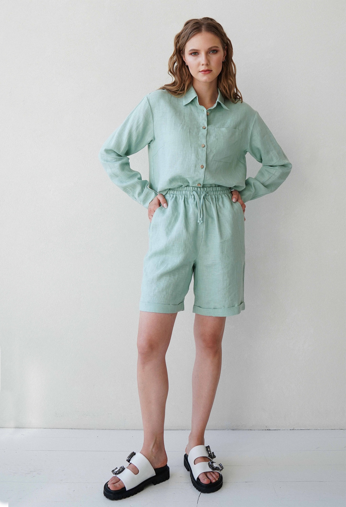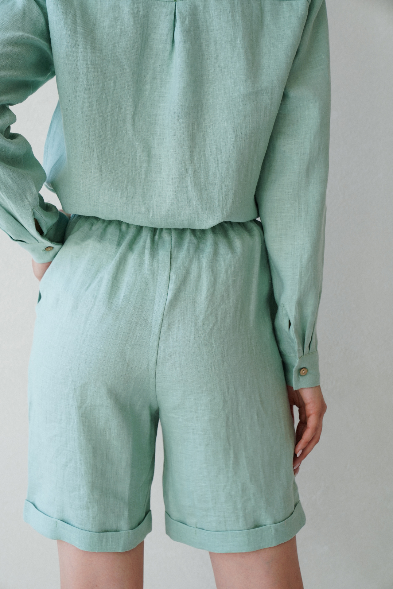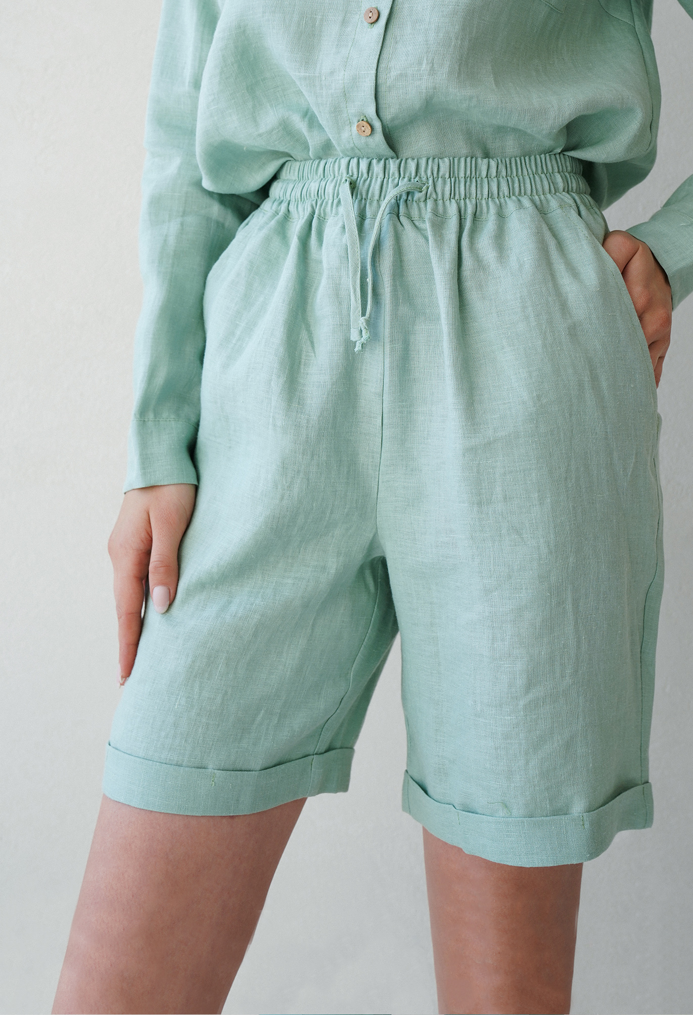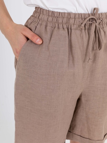 На сайте указаны российские размеры. Ткань: выполнены из 100% льна, природного экологичного материала. Крой: прямой силуэт с увеличенной высотой пояса. Легкие, почти невесомые, с функциональными карманами и комфортным поясом-резинкой, который подчеркивает линию талию, – модель, в которой нет ничего лишнего. Подходят под разные типы фигур, идеальны для создания летних образов с акцентом на удобство и расслабленность. Отделка: стильный подворот визуально удлиняет ноги. Затягиваются на тонкий шнурок, который можно завязать в небольшой бант или узел. Отсутствие молнии позволяет надевать изделие за считанные секунды. Идеально сочетаются с линейкой льняных и хлопковых блузок и рубашек, а также трикотажем из коллекции Stern. Идеальную пару можно найти в соответствующих разделах на сайте.