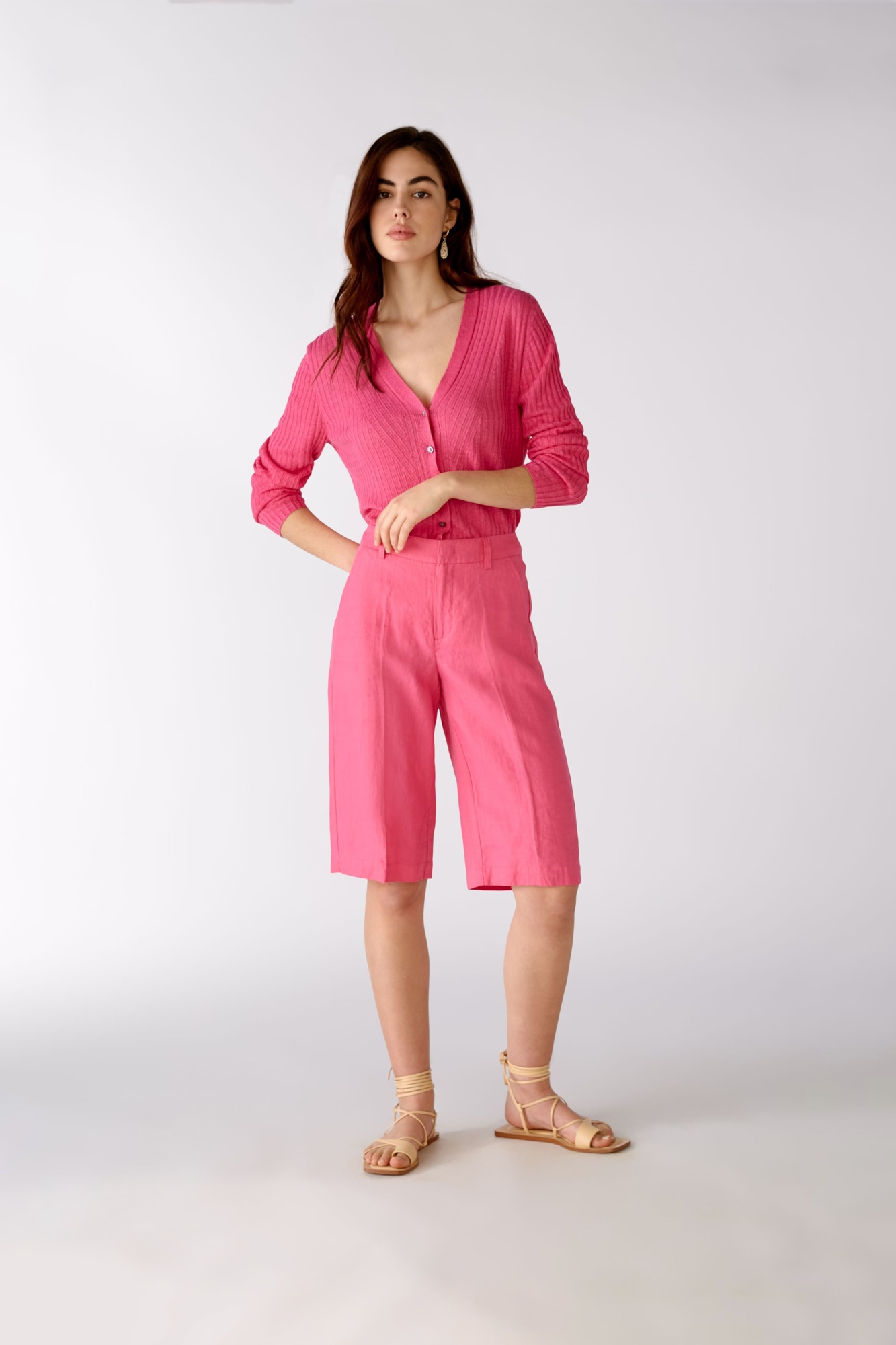 На сайте указаны российские размеры. Повседневные льняные шорты с элегантной складкой и практичными боковыми и задними карманами. Можно сочетать с трикотажем, футболкой или блейзером.